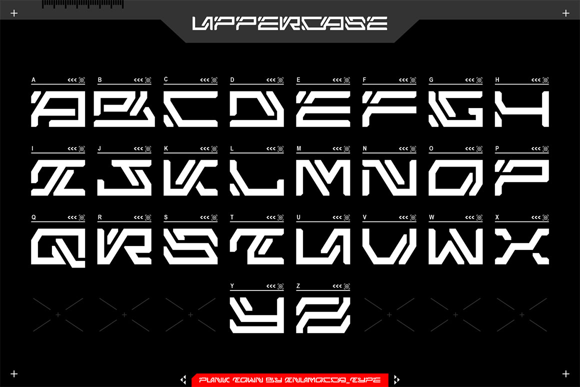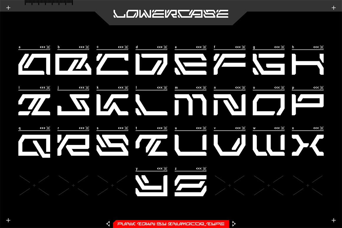 Punk Town Typeface Inspiration by Futuristic type, Rebel, Modern Technology, Synthwave, Sci-fi Movie Poster, science and Space Theme. its perpect for web and print design project, it was crafted carefully to form a structured and strong letterform that is perpect for covering your Project, You can playing to change ghlyps with Stylistic feature. like Lettering, Website Interface, Magazine, Branding, Poster, Quotes Lettering, Logos, and more your project design.