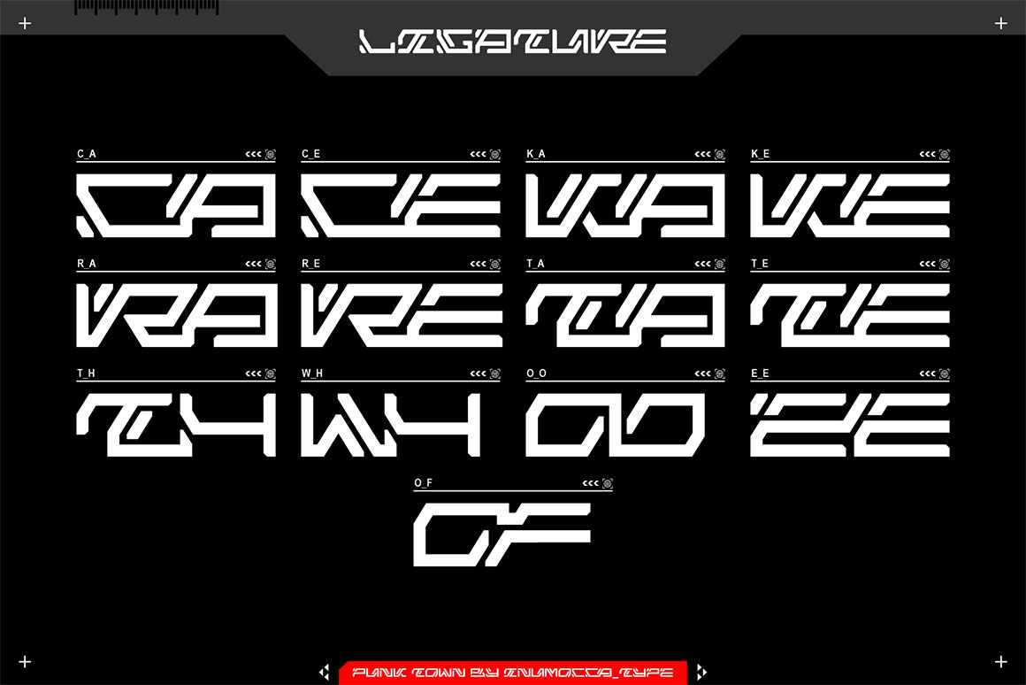 Trendy, sharp, modern, cyberpunk & futuristic style display fonts for your creative projects. Artistic and unique style on these fonts will be great for any branding project. Lot of alternates and ligatures will help you to create original logo design or website header! Enjoy 🙂