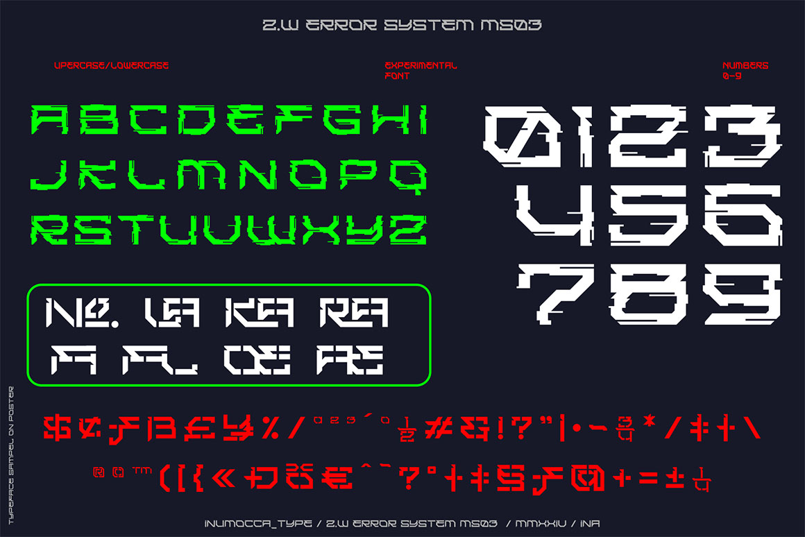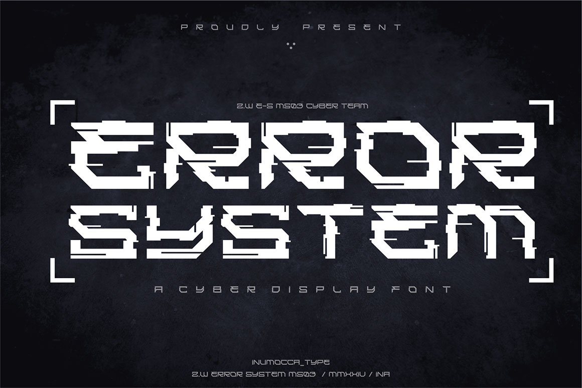 Z.W ERROR SYSTEM a Cyber Display Font Inspiration by Cyber Look, Military design, Rebel, Modern Technology, Synthwave, Sci-fi Movie Poster, science and Space Theme. Really great font to covering your Project, like poster Game, mecha poster, logotype, Website Interface, Magazine, Branding, Logos, and more your project design.
