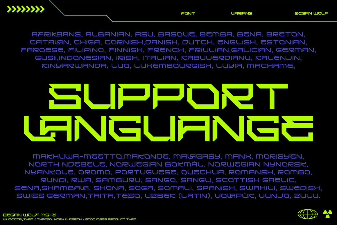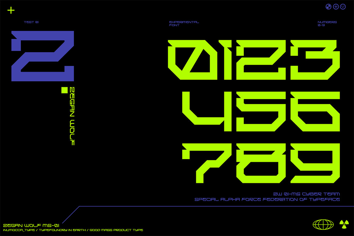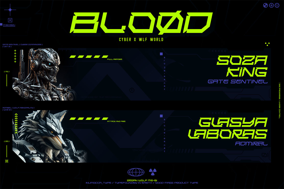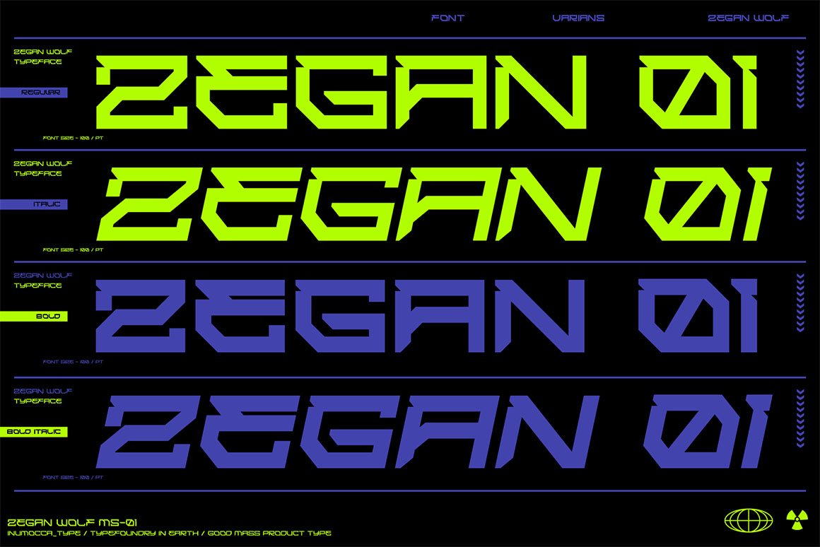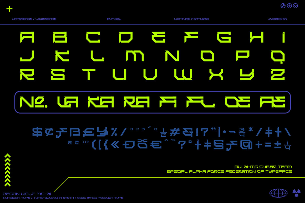 Zegan Wolf a Cyber Display Font Inspiration by Game Poster, futuristic design, Modern Technology, Synthwave, Sci-fi Movie Poster, science and Space Theme. Really great font to covering your Project, like poster Game, mecha poster, logotype, Website Interface, Magazine, Branding, Logos, and more your project design.