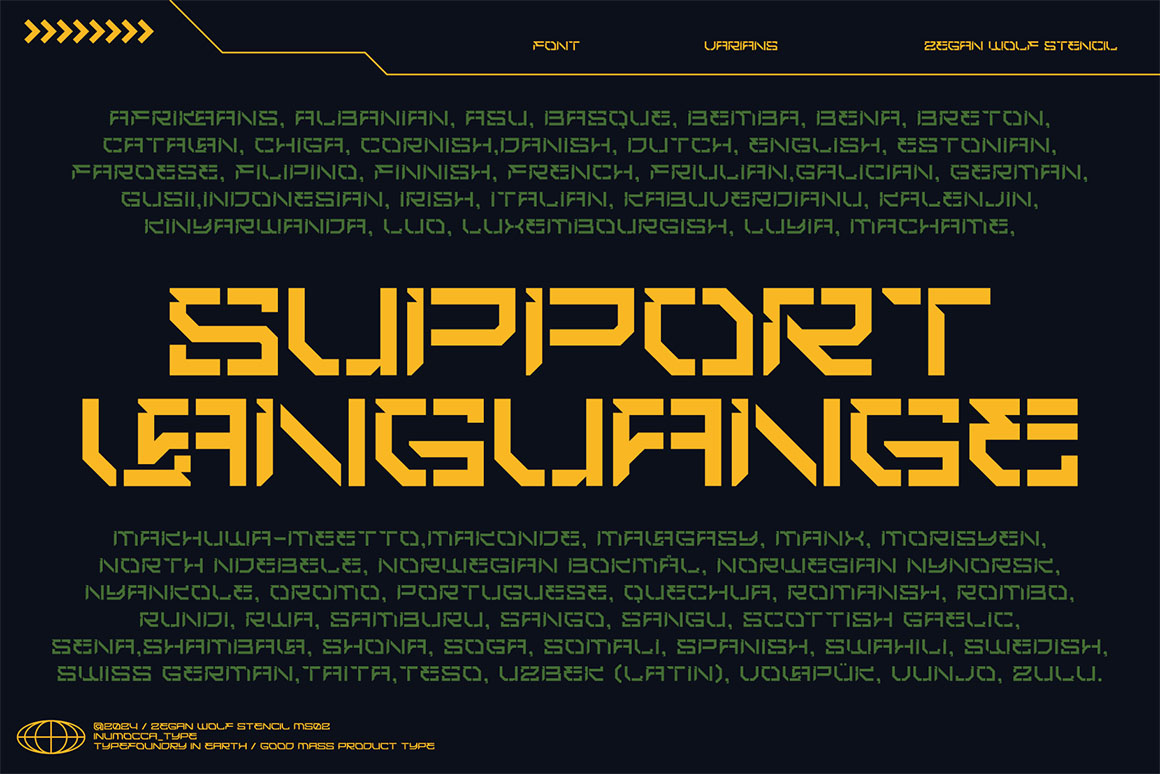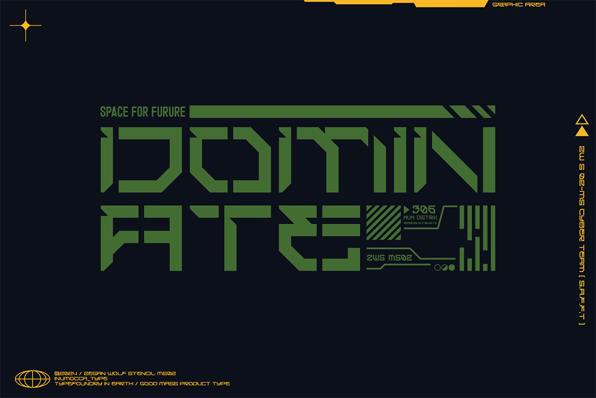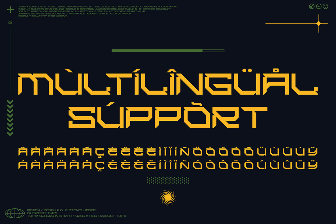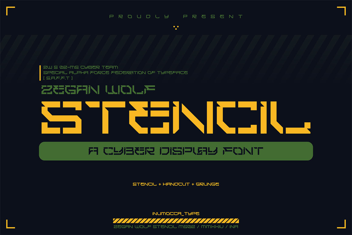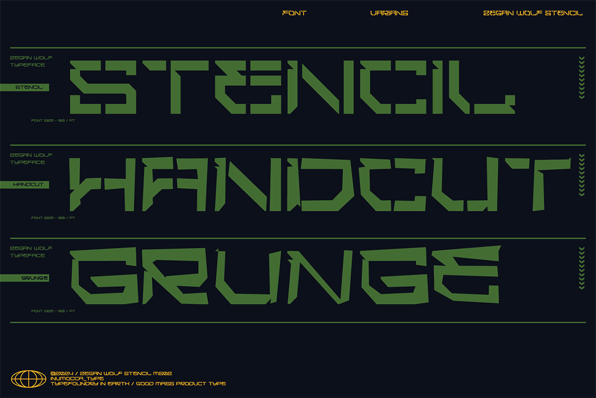Zegan Wolf STENCIL a Cyber Display Font Inspiration by Game Poster, Military design, Rebel, Modern Technology, Synthwave, Sci-fi Movie Poster, science and Space Theme. Really great font to covering your Project, like poster Game, mecha poster, logotype, Website Interface, Magazine, Branding, Logos, and more your project design.
