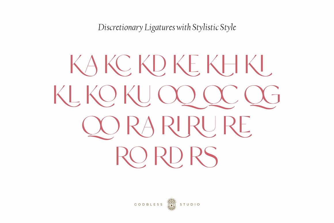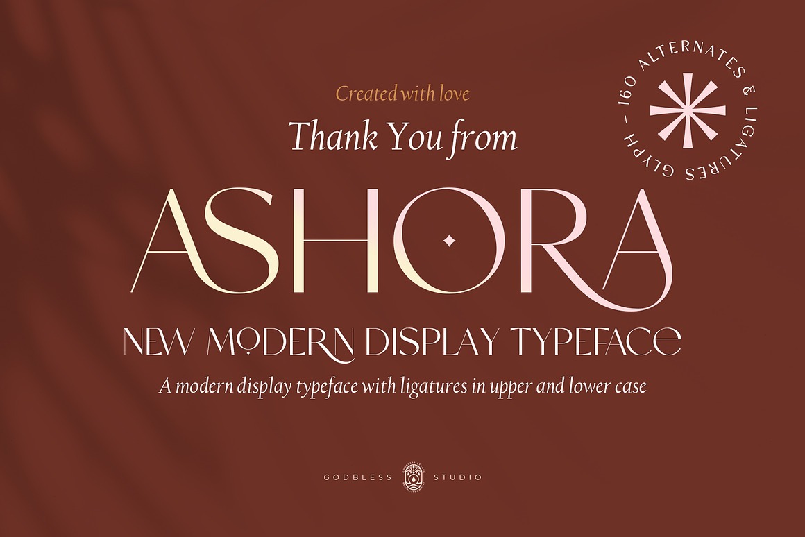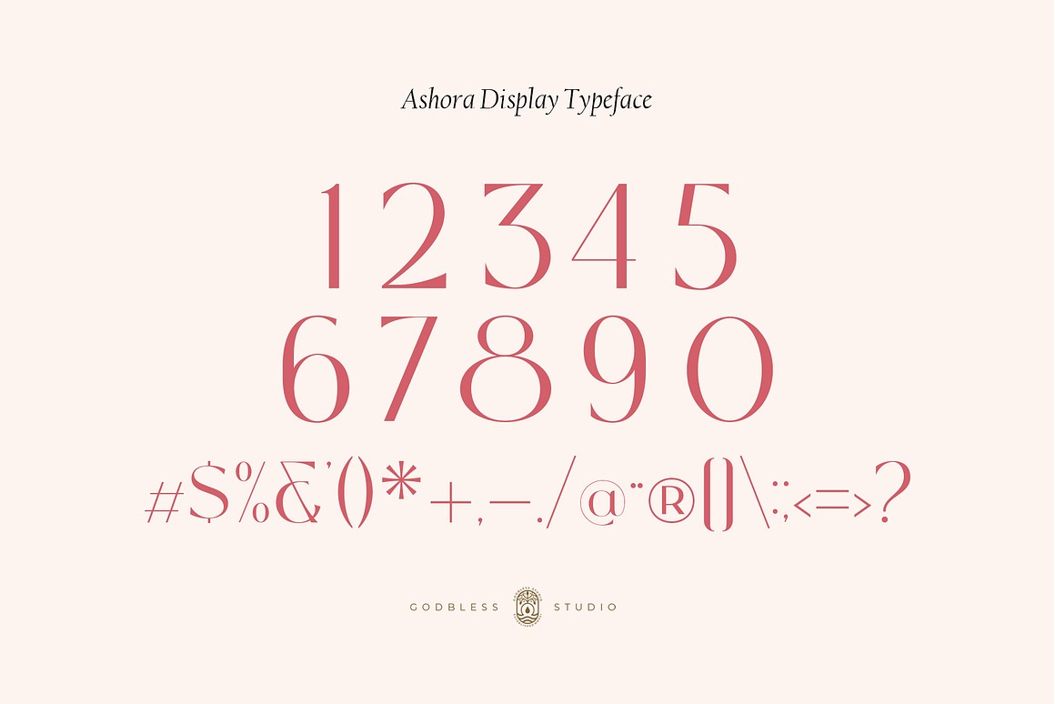 Ashora is an elegant, unique modern display typeface with loads of style font that uses ligatures to smoothly link letters. The large selection of stylistic alternations and ligatures makes this font extremely versatile. Perfect for elegant projects, luxurious branding, wedding invitations, and feminine logo design. Combine this font with other sans serif typefaces for a modern aesthetic.
