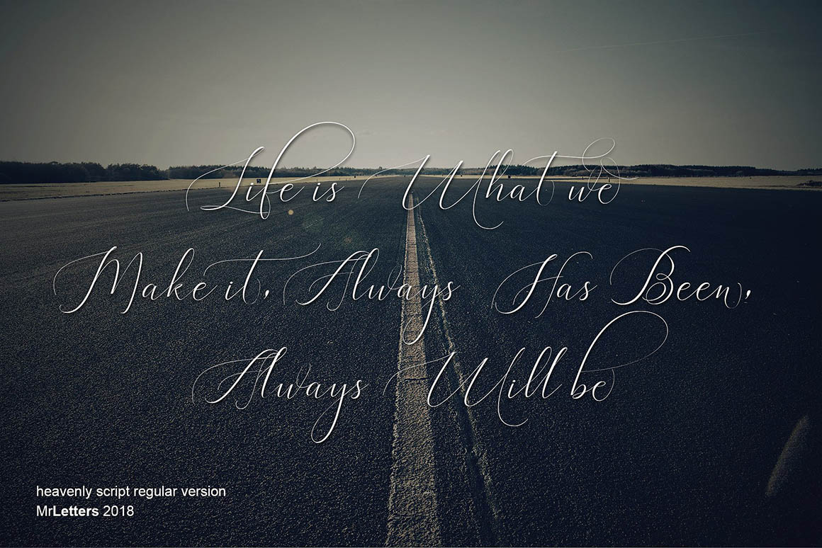 Heavenly Script is a modern calligraphic font with a very cool handwriting style, this font is perfect for your various design needs such as branding, wedding invitations, magazines, mugs, business cards, posters, and more. Heavenly Script are equipped with glyphs and alternative characters, allowing you to have many different character choices when starting your design.