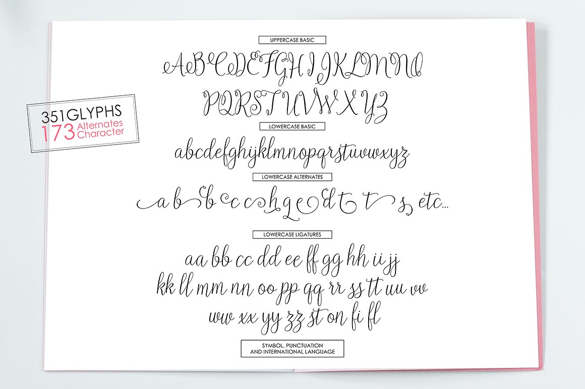 Claudette Script features OpenType stylistic alternates, ligatures and International support for most Western Languages is included. To enable the OpenType Stylistic alternates, you need a program that supports OpenType features such as Adobe Illustrator CS, Adobe Indesign & CorelDraw X6-X7, Microsoft Word 2010 or later versions.
