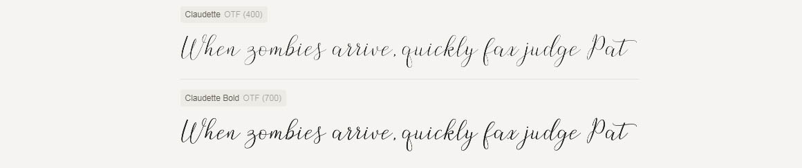Claudette Script is modern calligraphy design, including Regular and Bold Script. This font is casual and pretty with swashes. Can used for various purposes. such as logo, product packaging, wedding invitations, branding, headlines, signage, labels, signature, book covers, posters, quotes and more.