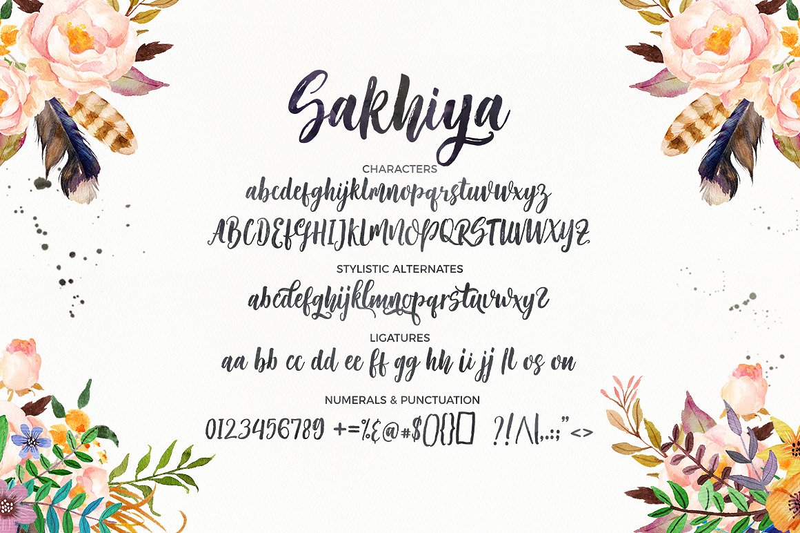 Sakhiya Script is a handwritten script font, based on the expression of the signature style that flows freely, friendly and organic. hand painted with love. Sakhiya Script are available ligatures and alternates characters in Open Type Features. Also with additional Sakhiya, a font display harmony to be combined with Sakhiya Script. Perfect for brand projects, logos, product packaging, posters, invitations, greeting cards, news, blogs, everything including personal charm.