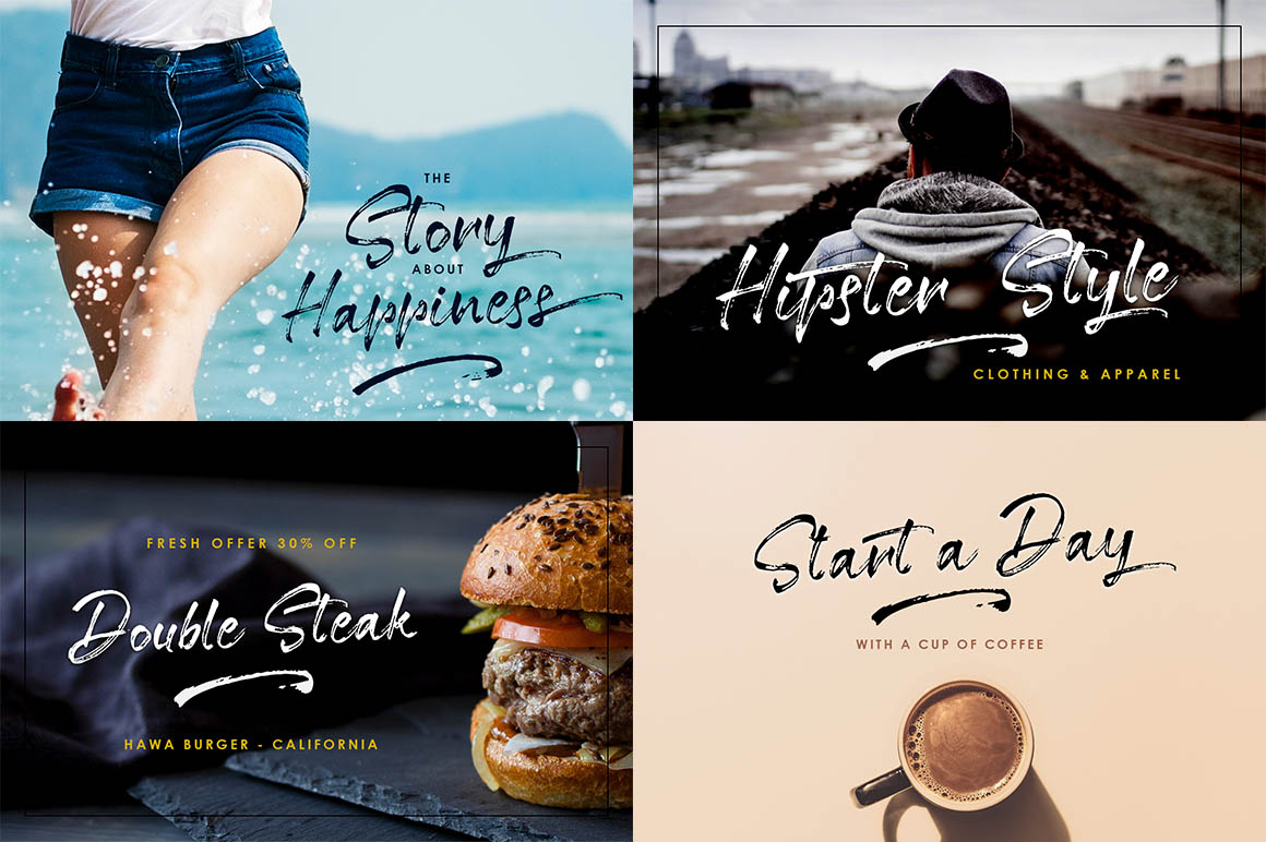 If you need some unique and professional quality custom font for your artistic style logo or slogan, this unique typography bundle from Apon Bahrainy is just for you! Great for your logos, cards, posters, mugs, t-shirts and many more. You can create true handwritten or signature texts without much effort.