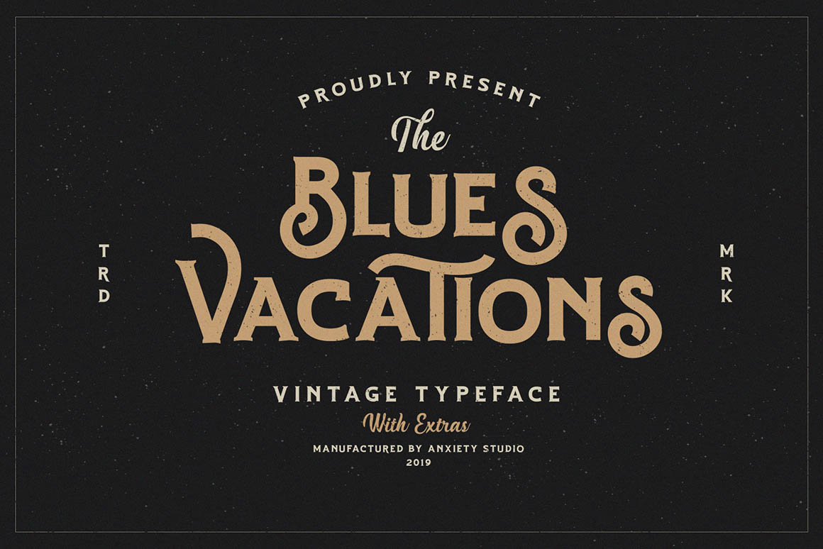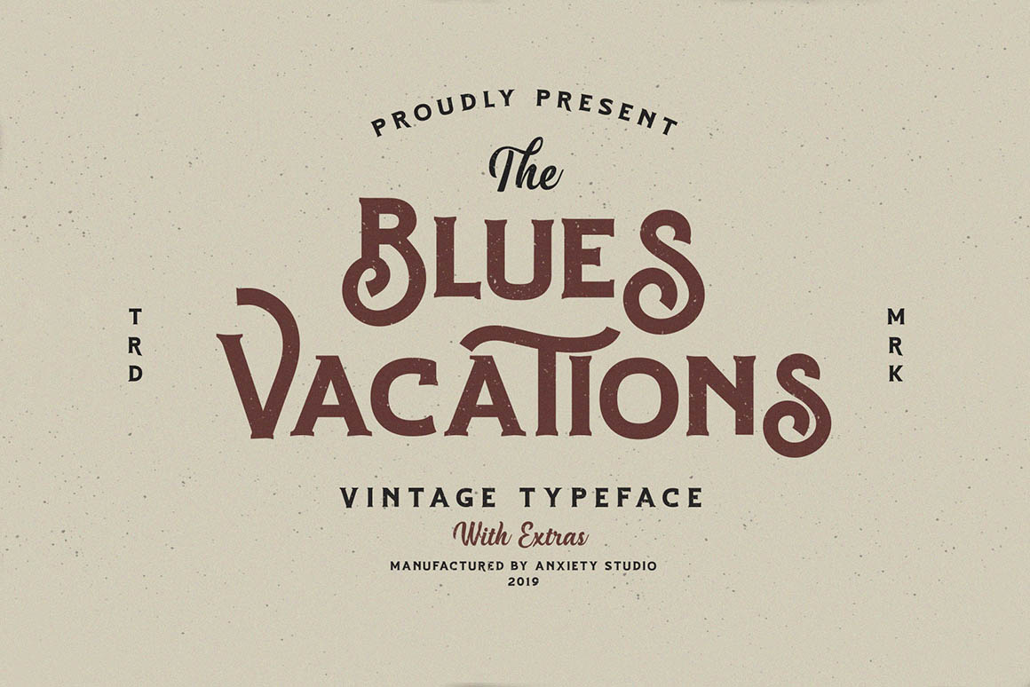 Blues Vacations is a beautiful font and vintage font, that are combined into pretty package. You will see this combination more in badges logos.