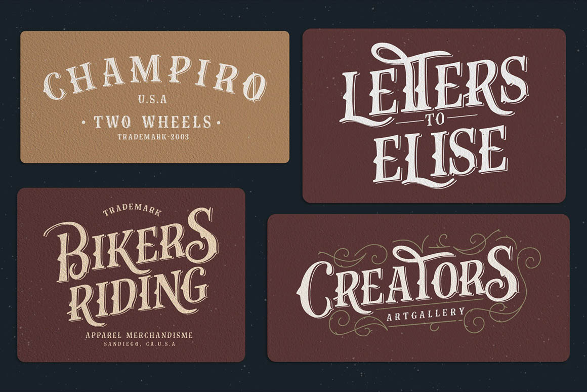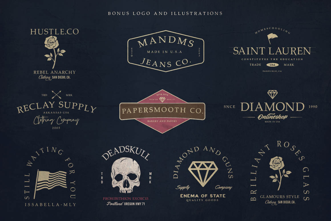 6 Vintage Style Fonts from Anxietystudio contains 6 retro or vintage style display font sets with 11 font versions and extra vector graphics! Don’t miss this vintage style typography & graphics bundle 😉