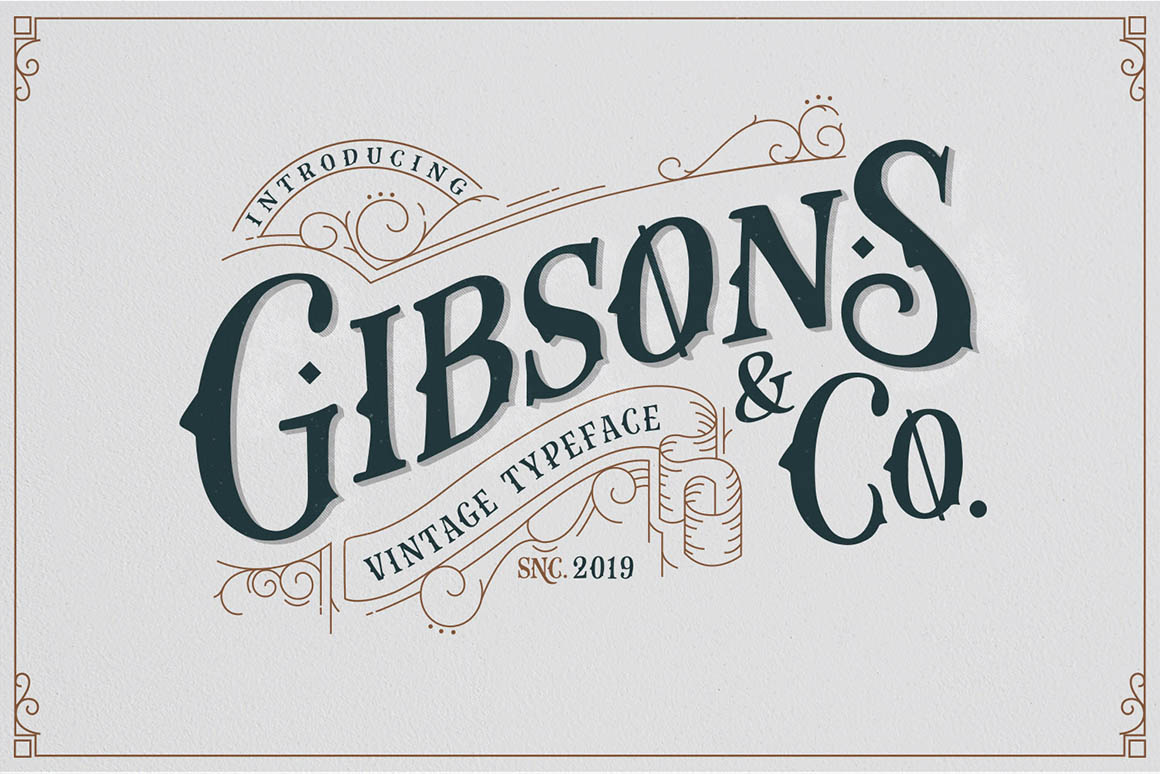 Gibsons Co is a beautiful font family and vintage font, that are combined into pretty package. You will see this combination more in badges logos, vintage logo and display.