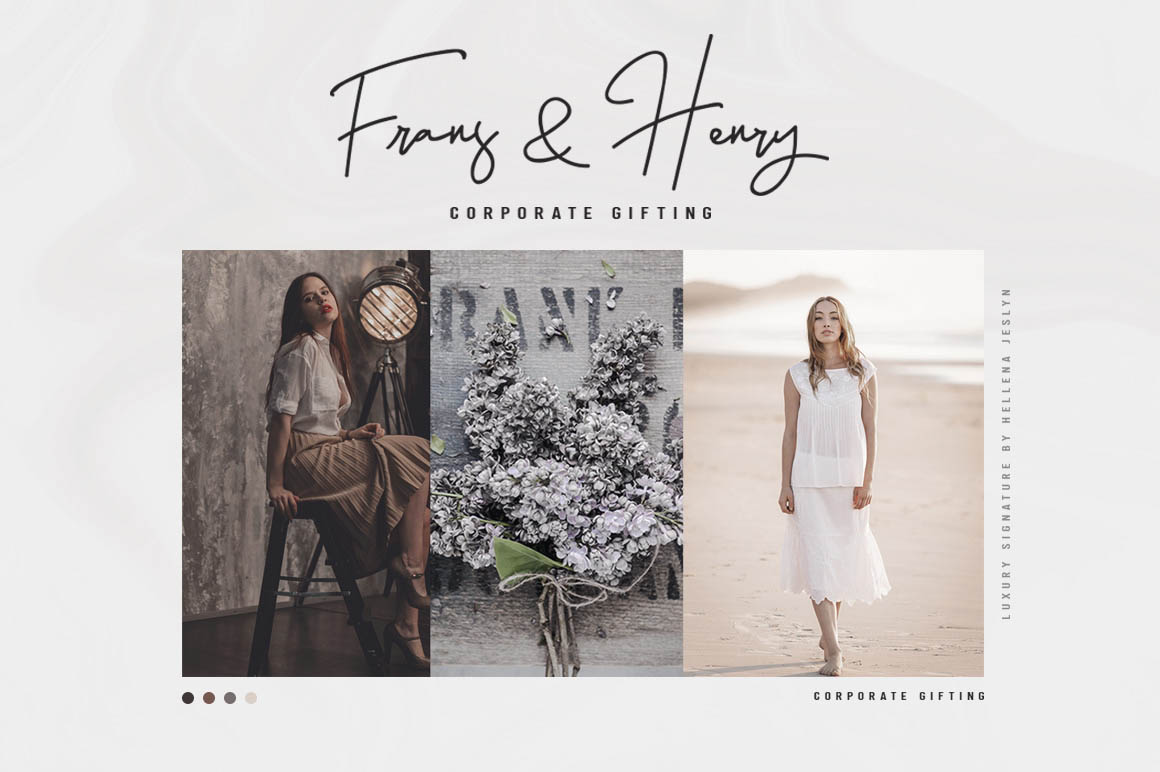 Anxiety Studio proudly presents, Hellena Jeslyn Font Duo is a signature font classy, fun, free compilation expressive and cool script inspired by a luxury fashion. Contemporary handwriting fonts with ligatures and alternative styles ready to add unique look and bloom on your design.