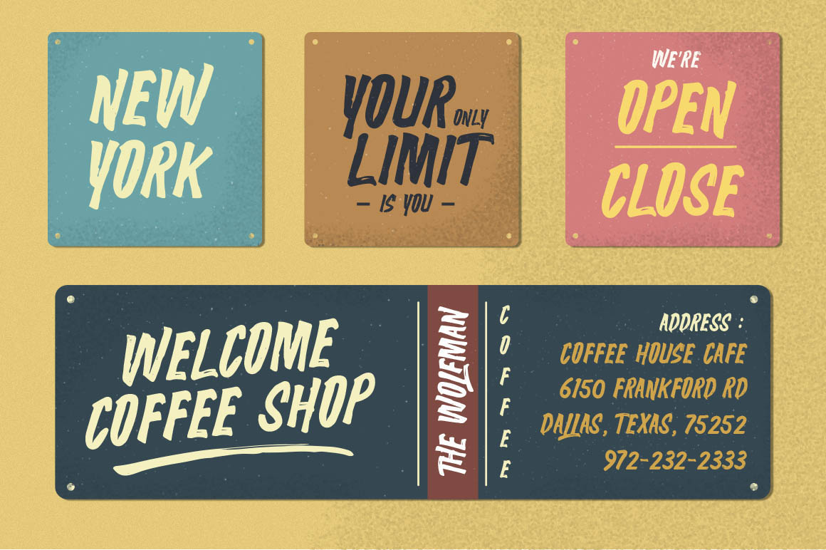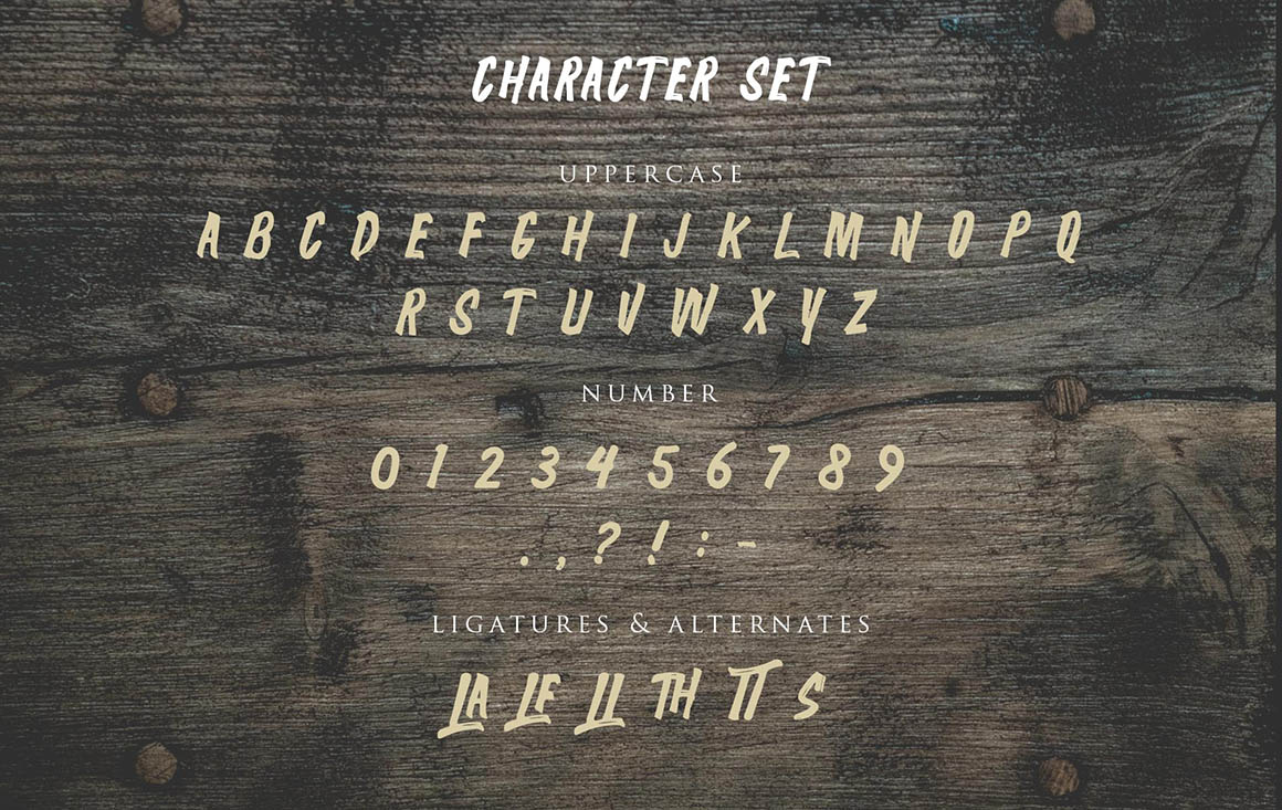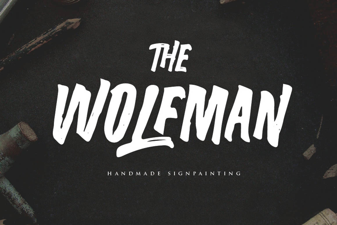 The Wolfman is a hand-painted font that each character is carefully painted to perfection. detail is maintained when the character is digitized. Thick brush fonts full of energy with extra attention to quick sweeps and sharp details, The Wolfman is guaranteed to deliver a very loud & fast message; ideal for logos, signpainting, clothing, quotes, product packaging, or anything that requires brush and thick typography.