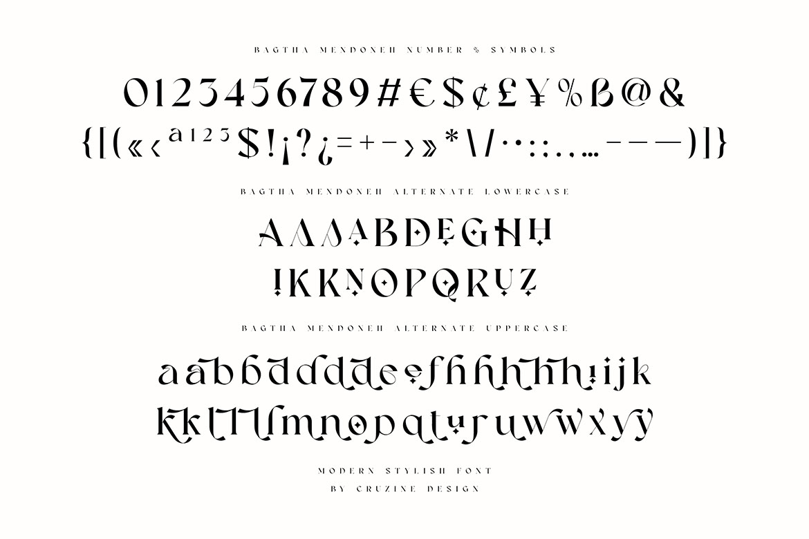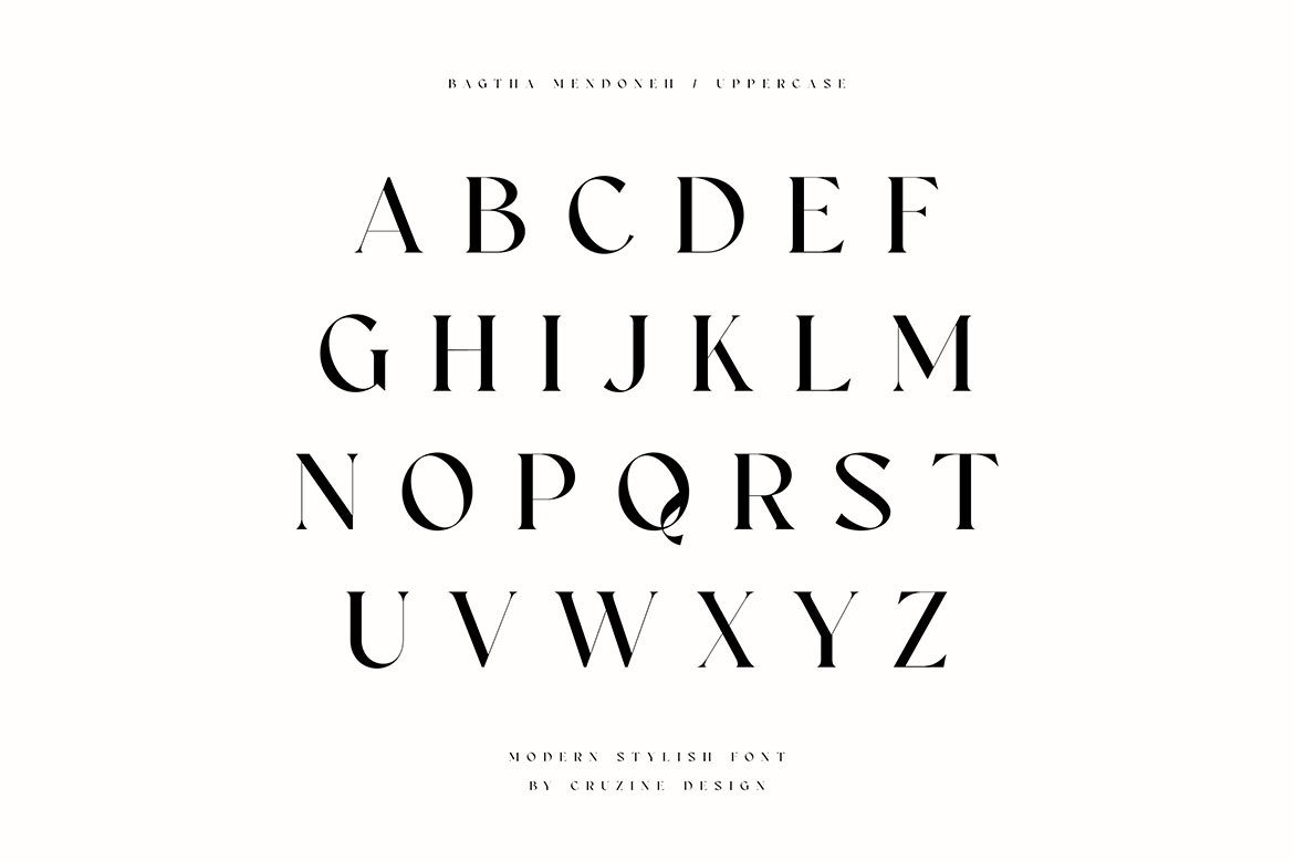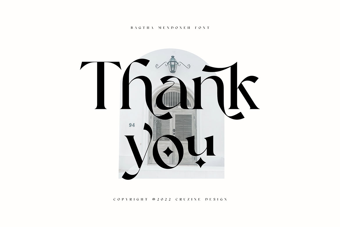 Trendy, classy & modern style serif font for your fancy projects. Elegant, fashion and classic style on Bagtha Mendoneh font will be great for any branding project. Lot of alternates and ligatures will help you to create unique and original logo design or website header! Enjoy 🙂