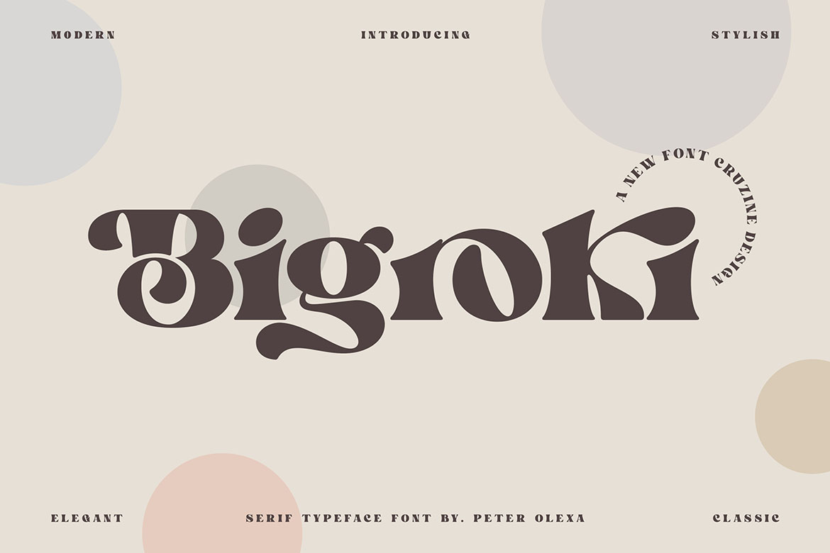 Trendy, bold & modern style serif font for your fancy projects. Elegant, fashion and classic style on Bigroki font will be great for any branding project. Lot of alternates and ligatures will help you to create unique and original logo design or website header! Enjoy 🙂