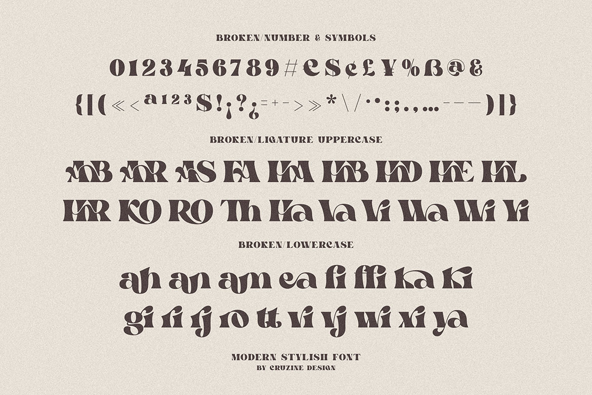 60 Trendy & Modern Fonts from Cruzine Design contains 60 fancy, modern, elegant & decorative display fonts for your new projects! Don’t miss this BIG & creative style font & branding bundle 😉