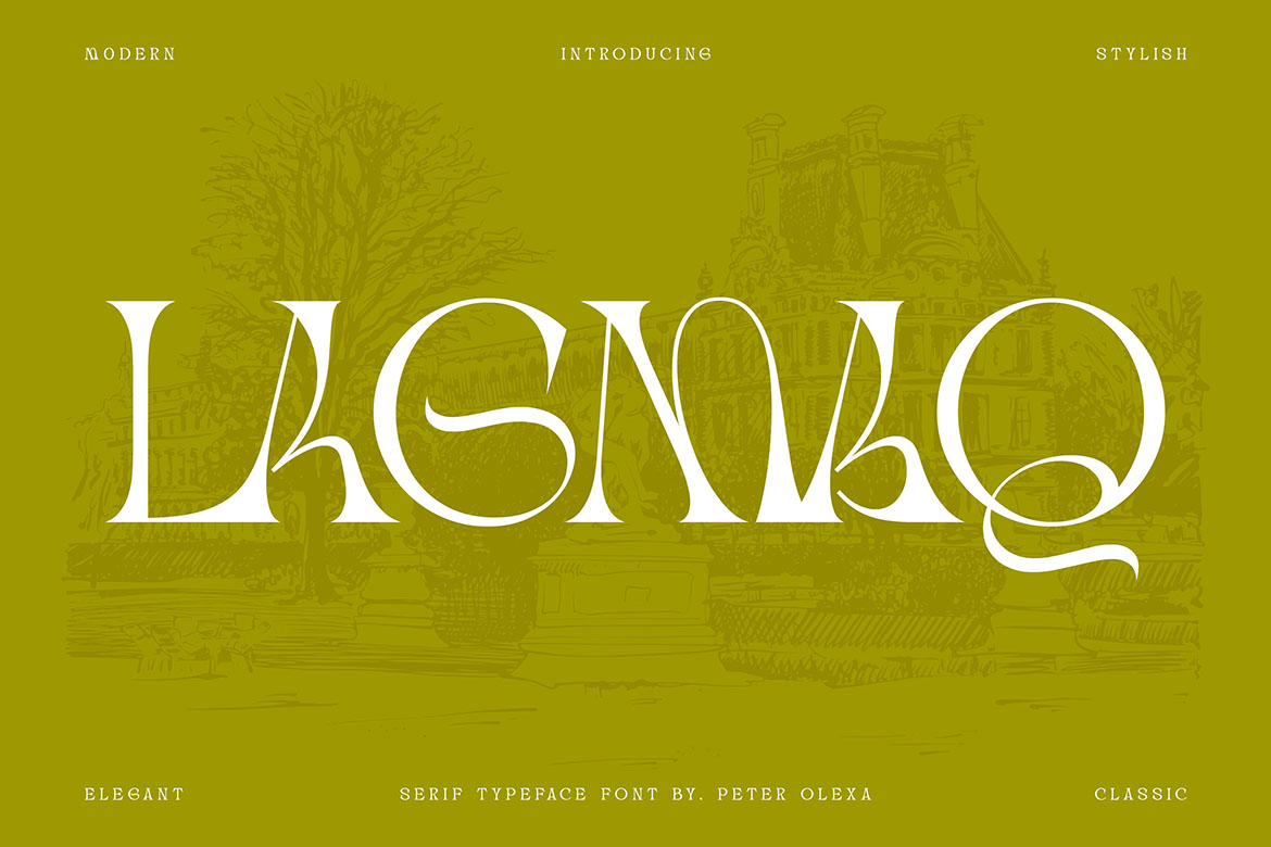 01. Lagmaq Unique Serif Font from Cruzine Design
