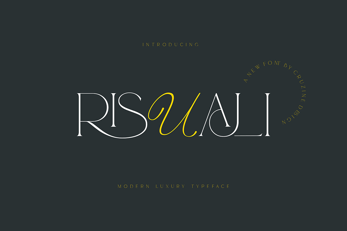 Trendy, elegant, luxury & modern style serif font for your fancy projects. Elegant, artistic and romantic style on Risuali font will be great for any branding project. Lot of alternates and ligatures will help you to create unique and original logo design or website header! Enjoy 🙂