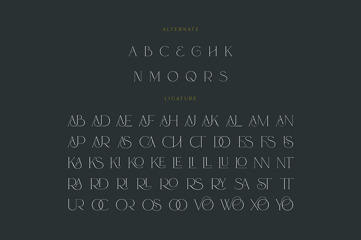 Trendy, elegant, luxury, futuristic & retro style serif & sans display fonts for your fancy projects. Elegant, artistic and unique style on these fonts will be great for any branding project. Lot of alternates and ligatures will help you to create unique and original logo design or website header! Enjoy 🙂