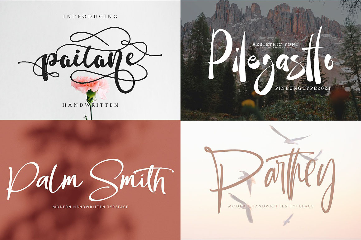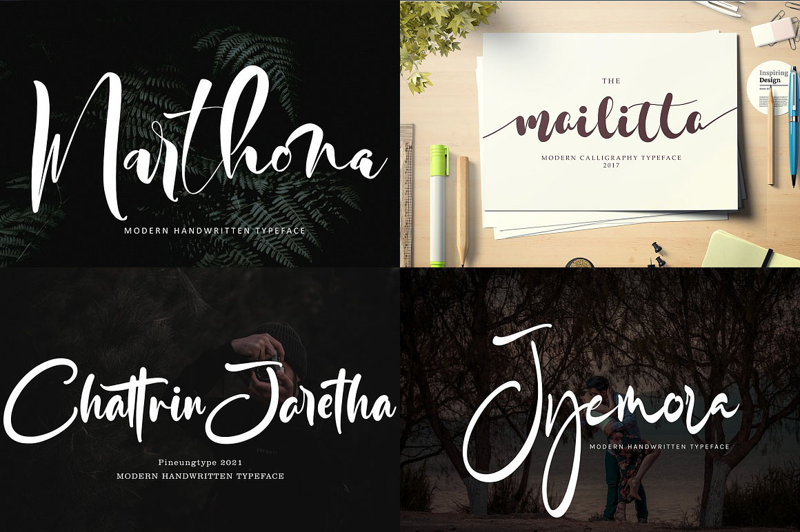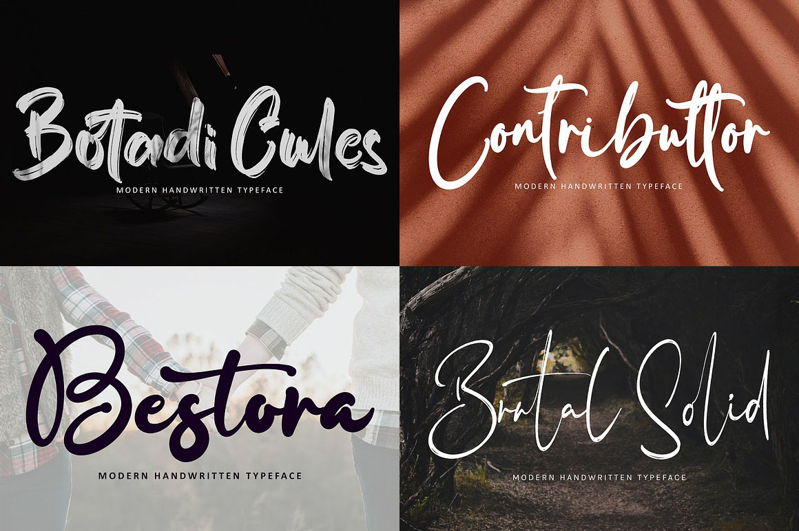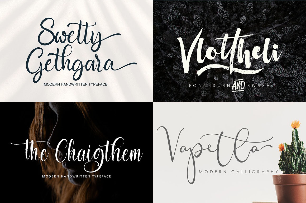 600 Handwritten & Creative Fonts from Pineungtype & Missinklabstudio contains 600 handwritten & casual display fonts for your new projects! Don’t miss this creative, artistic & elegant style font & branding bundle 😉