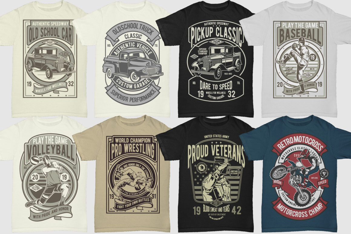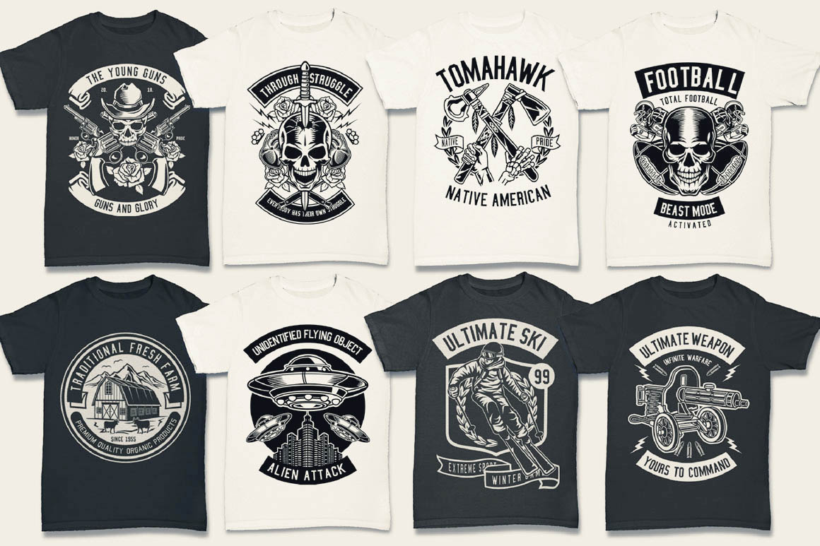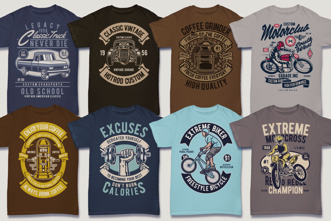 If you need something new in your vector graphics library or some cool illustrations for your new project we have a unique vector illustrations bundle for you đ And really HUGE bundle from Dan Roach. With 600 professional vector designs or illustrations with retro feel. You can create unique t-shirt designs, stickers, badges, posters, invitations or logo designs with various styles.