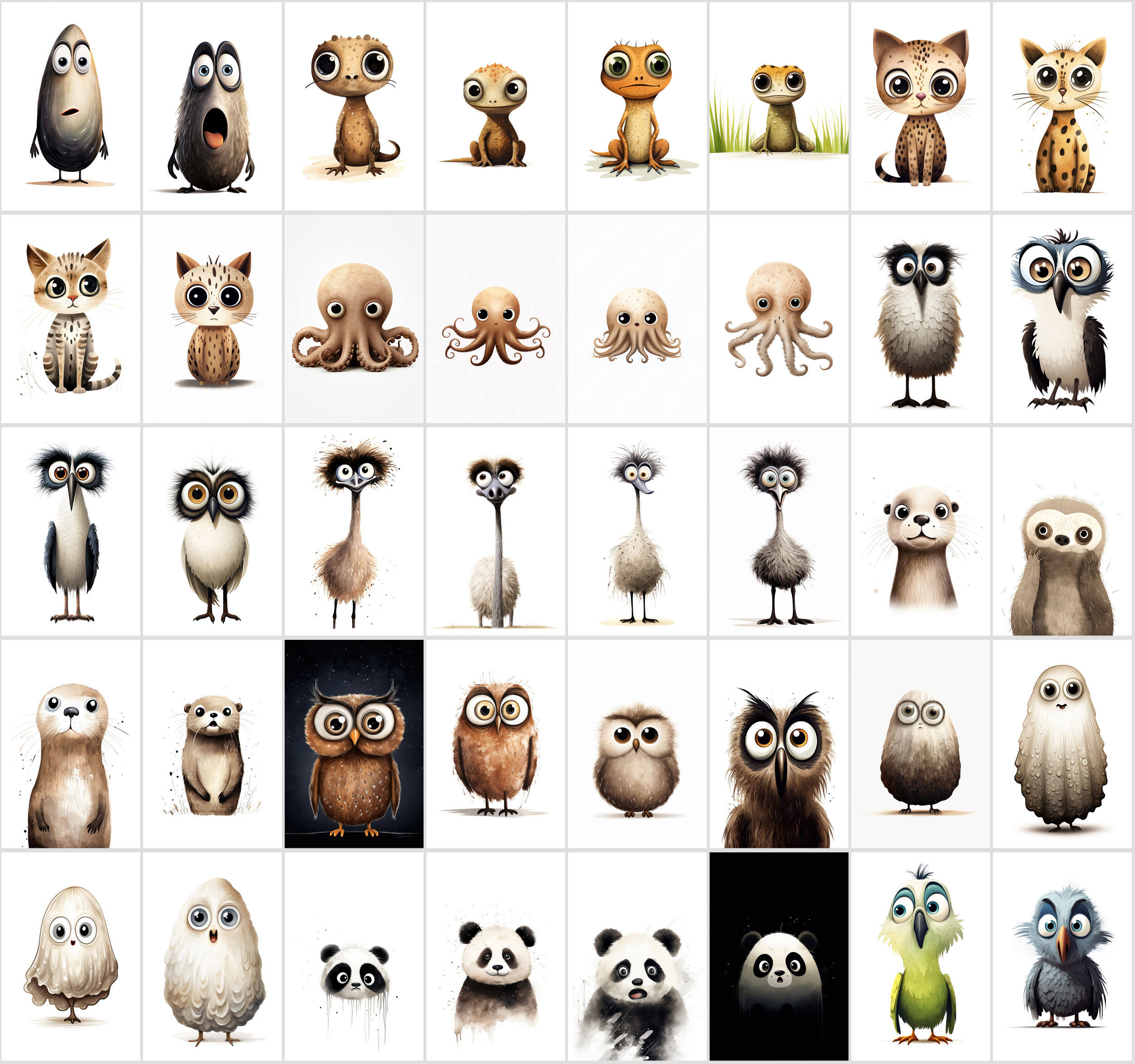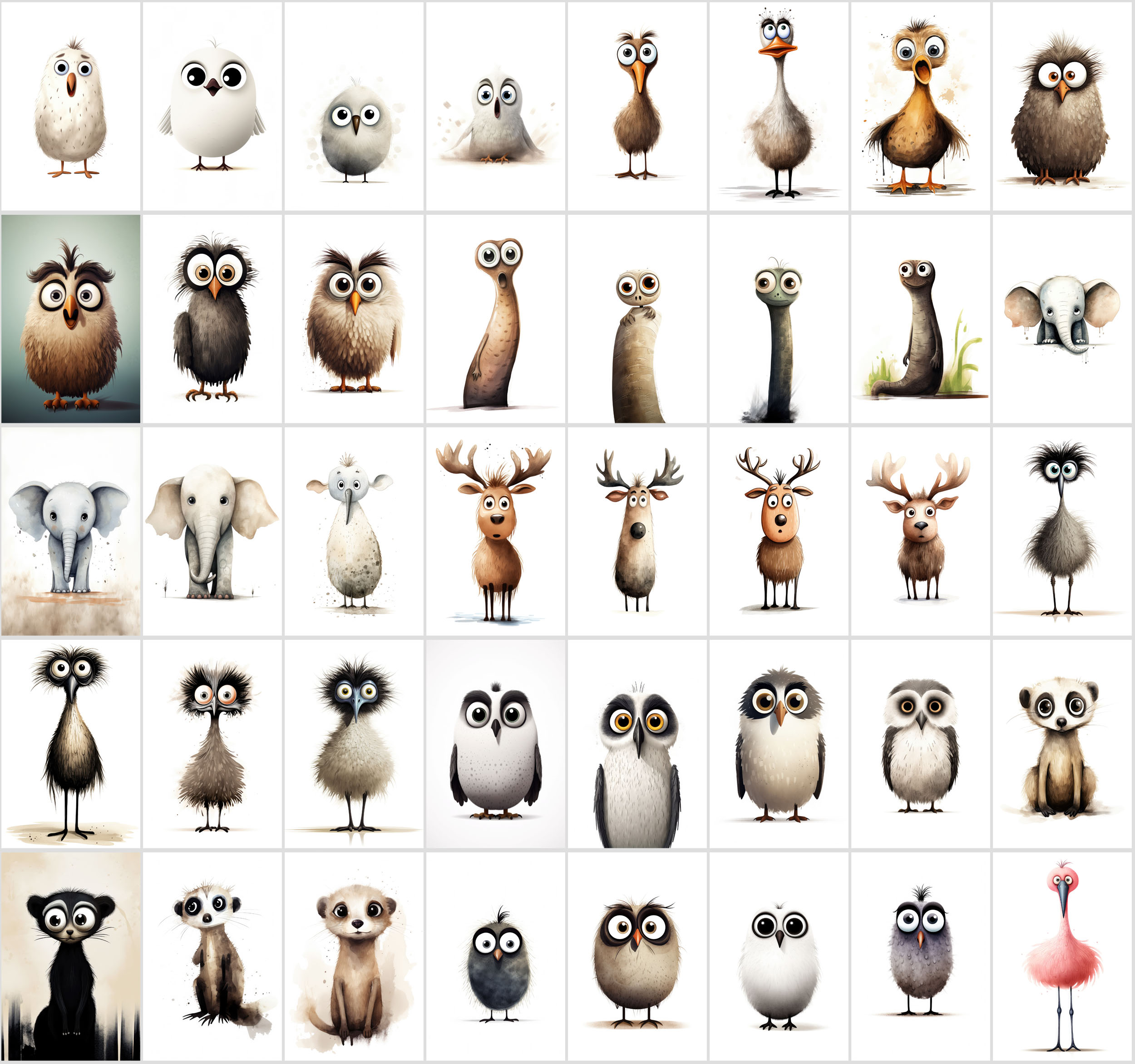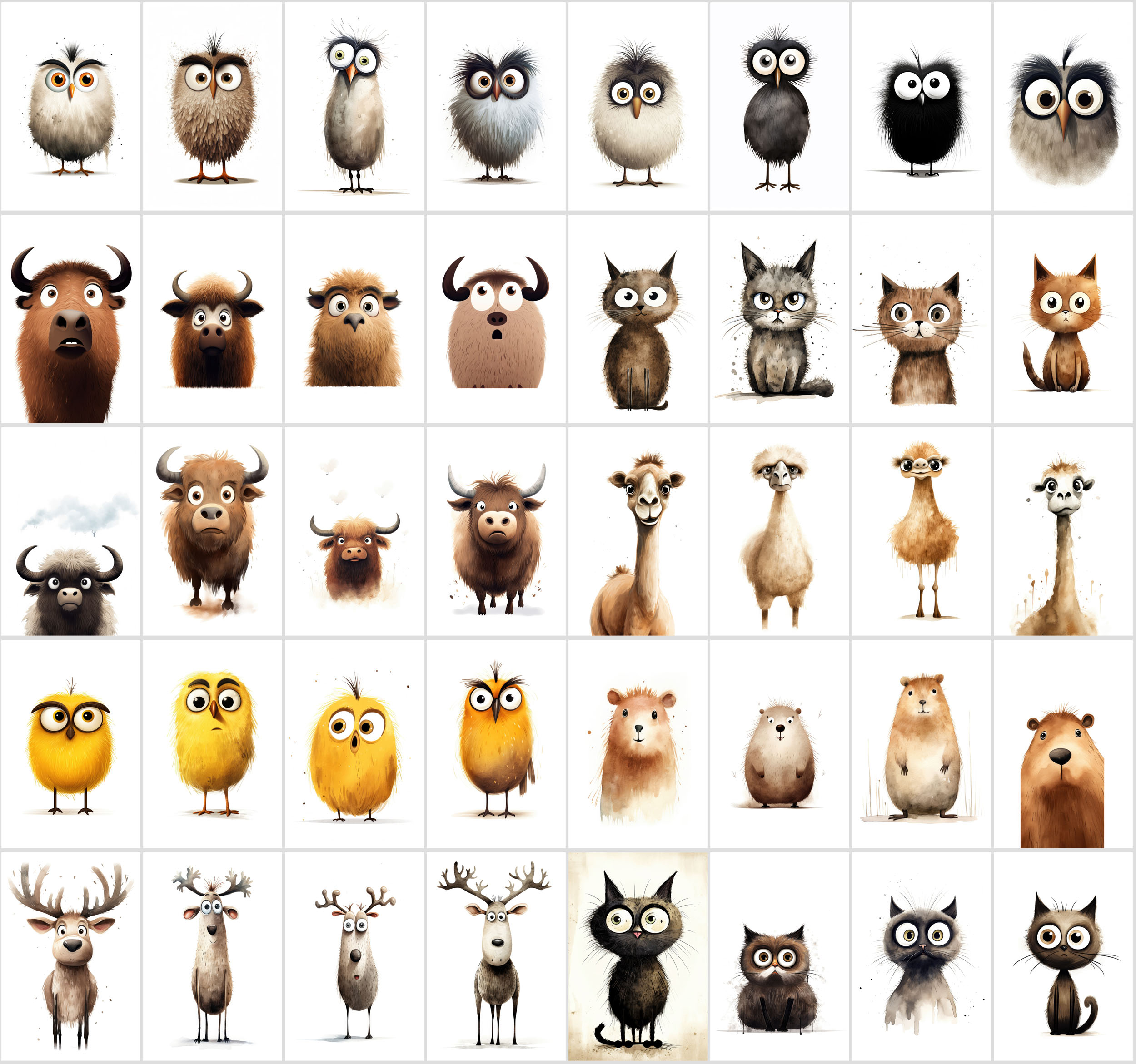 - Big Eyes & Expressive Faces: Designed with big eyes and expressive faces, these animals capture the essence of wonder or a scared look, perfect for emotive projects.