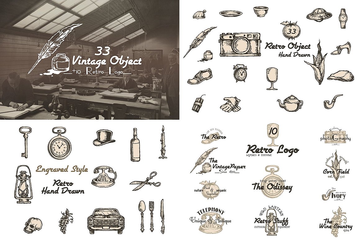 Amazing vintage illustrations or graphics from NStudio for your new artistic style projects! You’ll find here a lot of retro illustrations, shapes & branding templates. Enjoy 😉