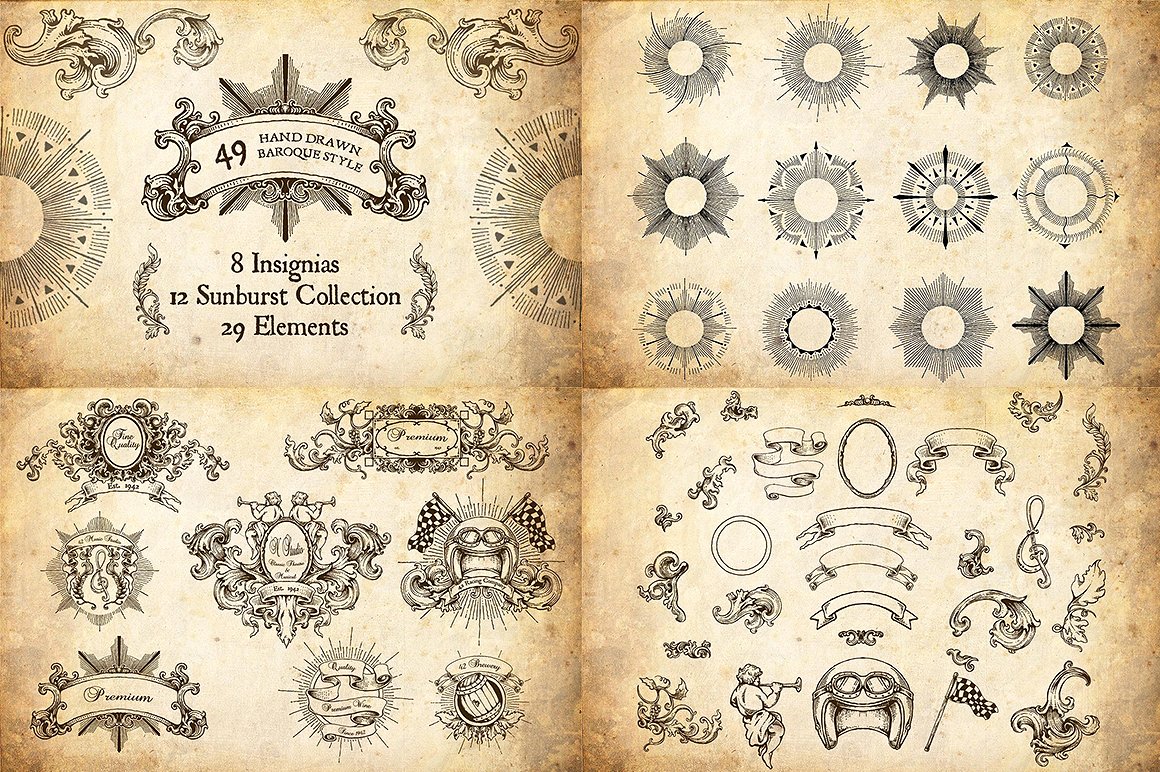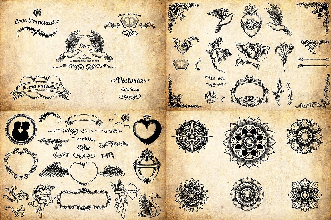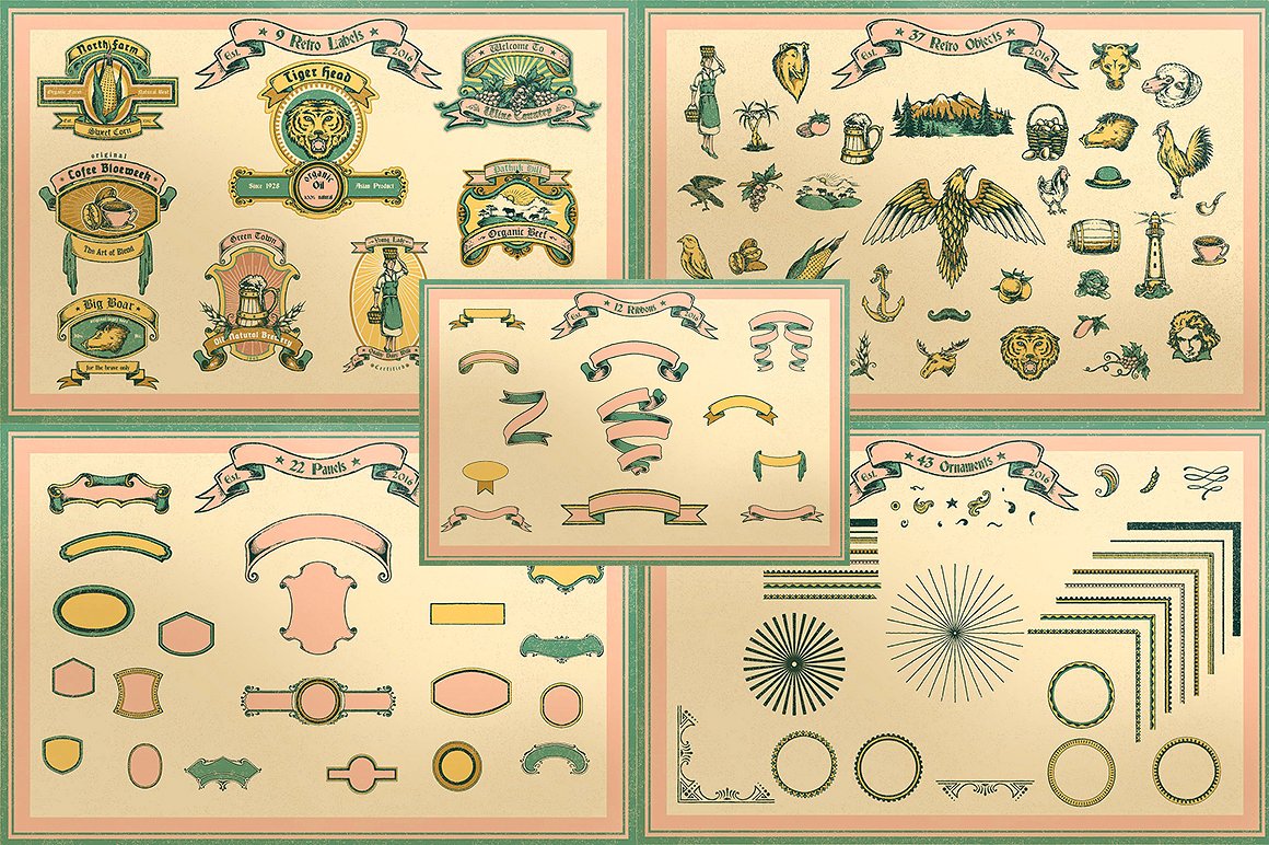 - 15 vintage style illustration or graphics sets in 1 bundle!
