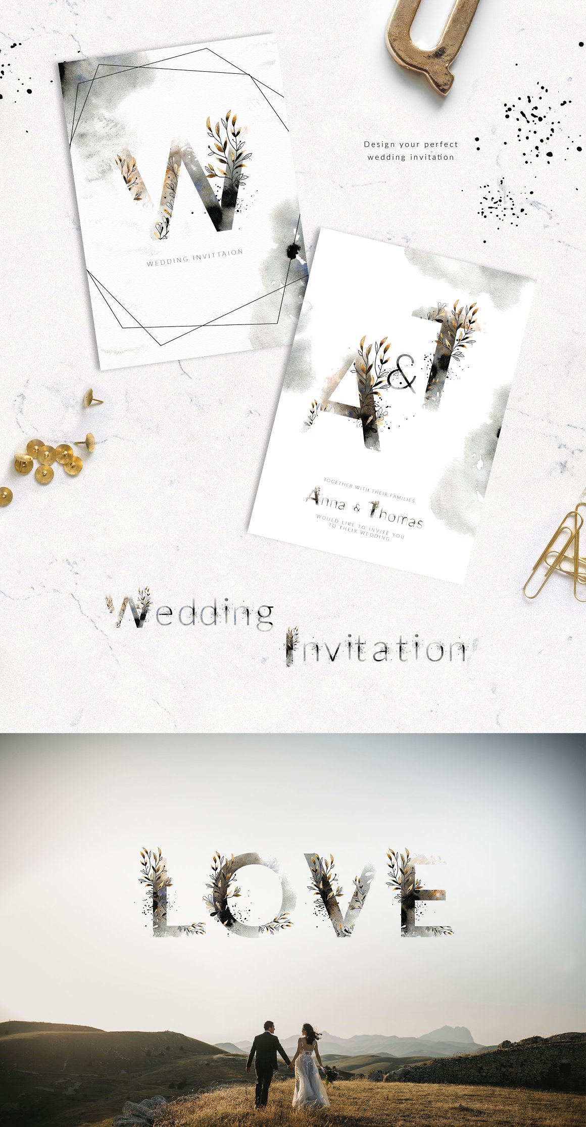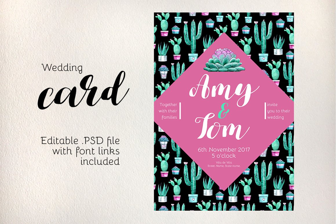 - 1 x wedding invitation card (contains editable text layers, font links included)