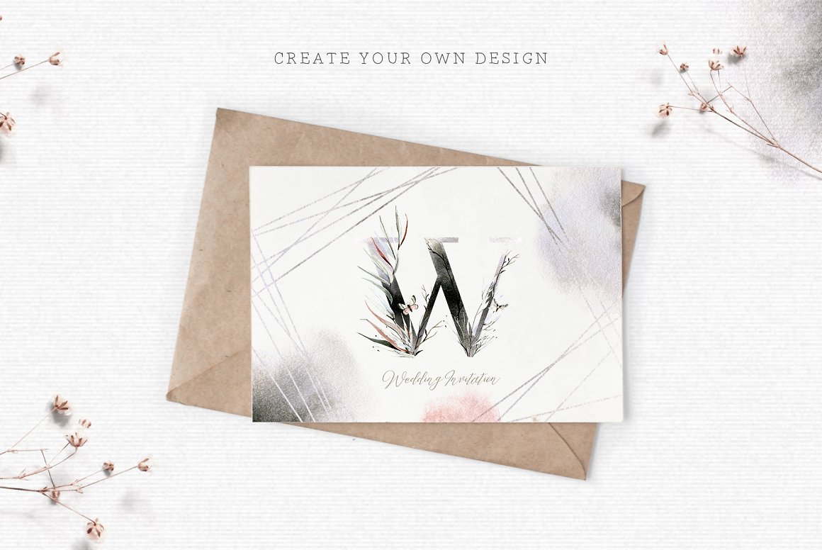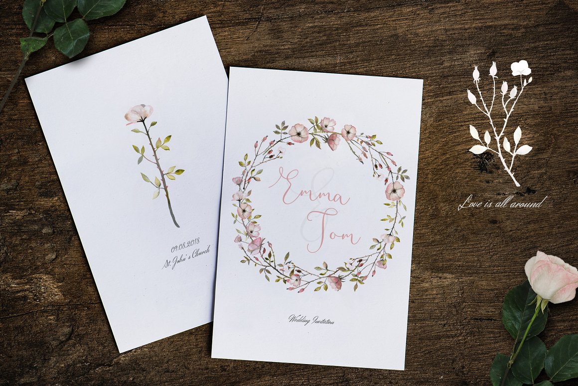 This set is perfect for weddings, cards, packaging, CI, blogs and as home decoration elements.