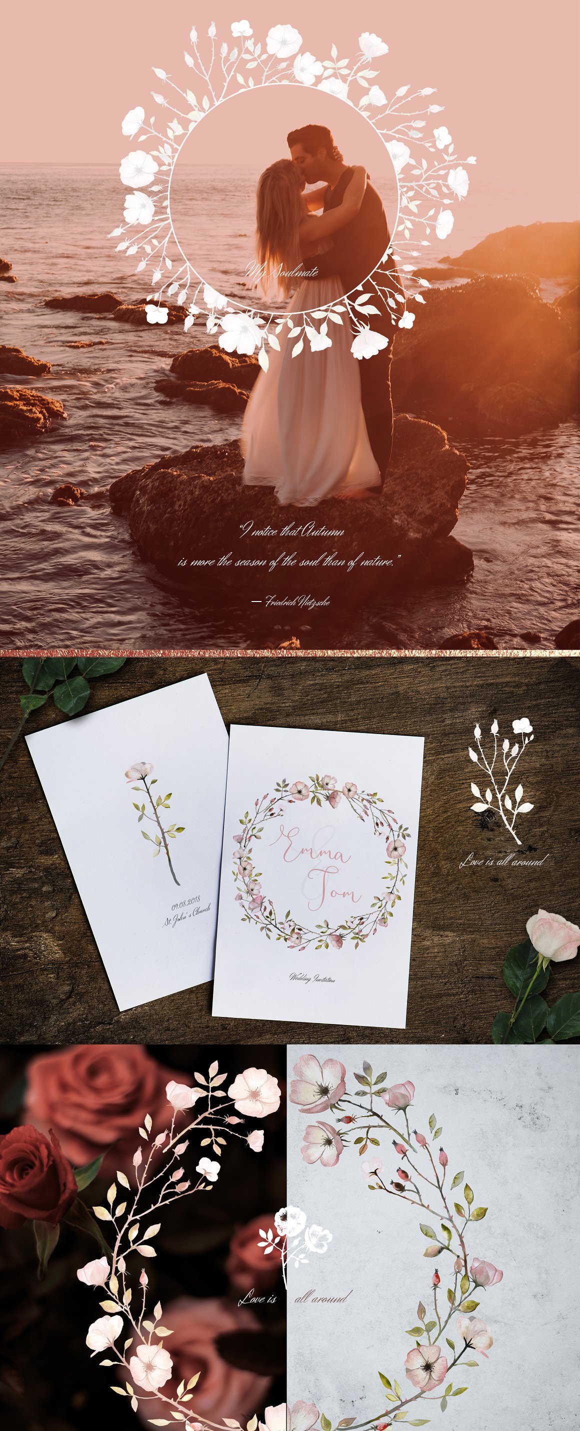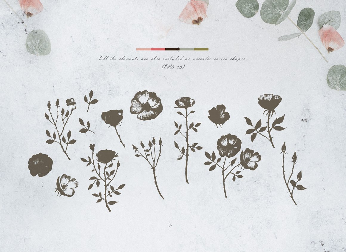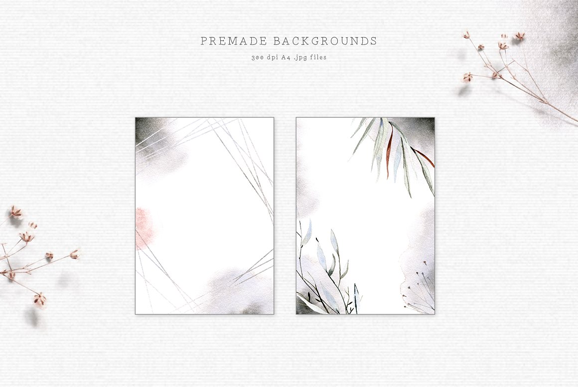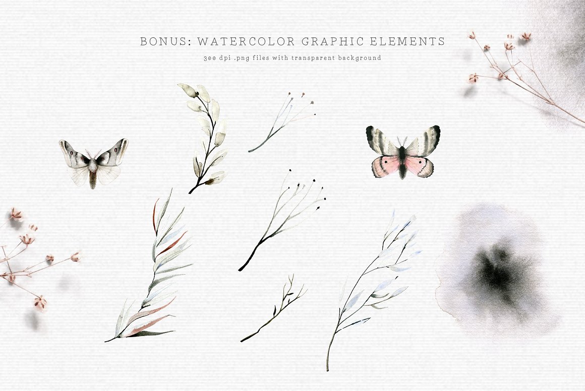 This set is perfect for moody rustic weddings, cards, packaging, blogs and as home decoration elements.