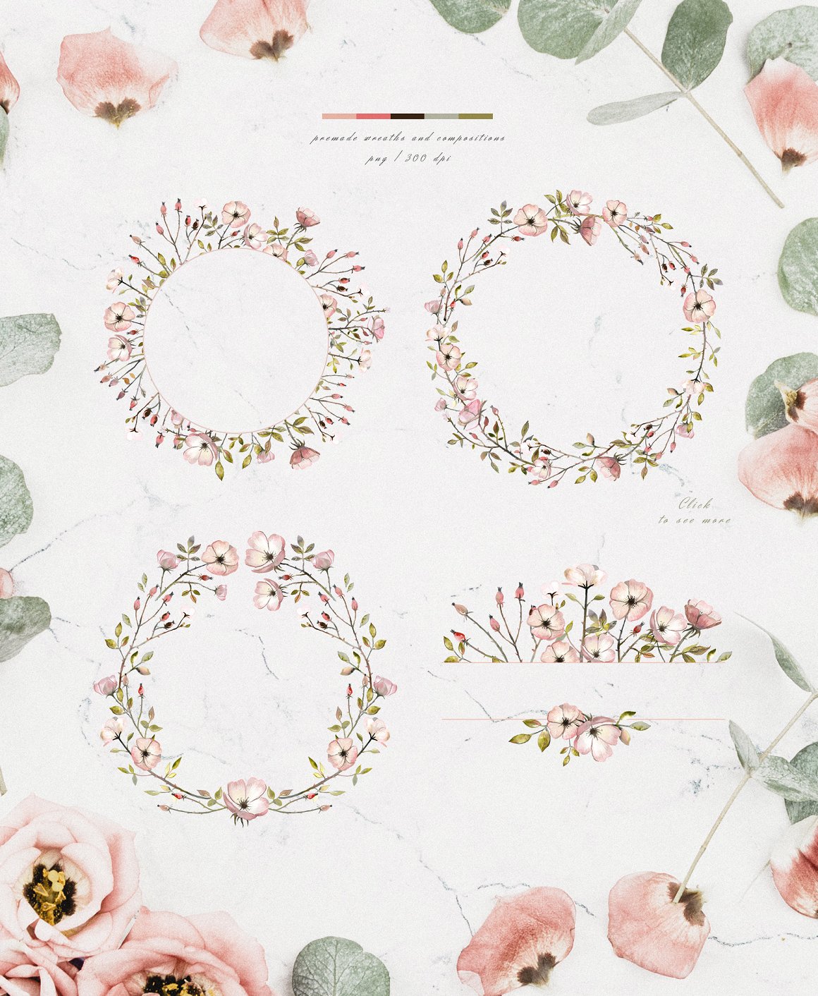 8 x .PNG premade, ready to use, WREATHS with transparent background (300 dpi)