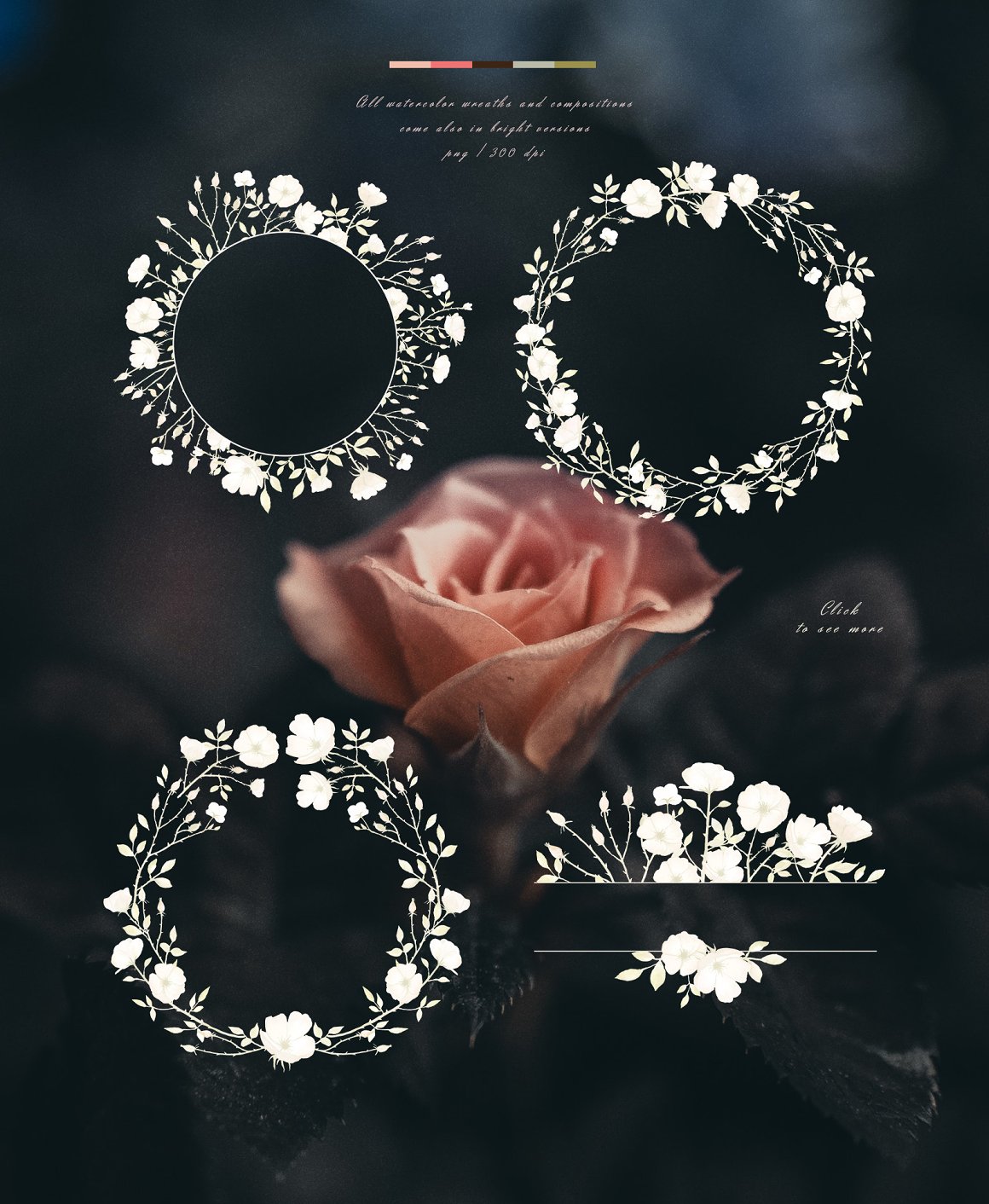 3 x .PNG premade, ready to use, WREATHS in white color version, with transparent background (300 dpi, 4724 x 4724 px)