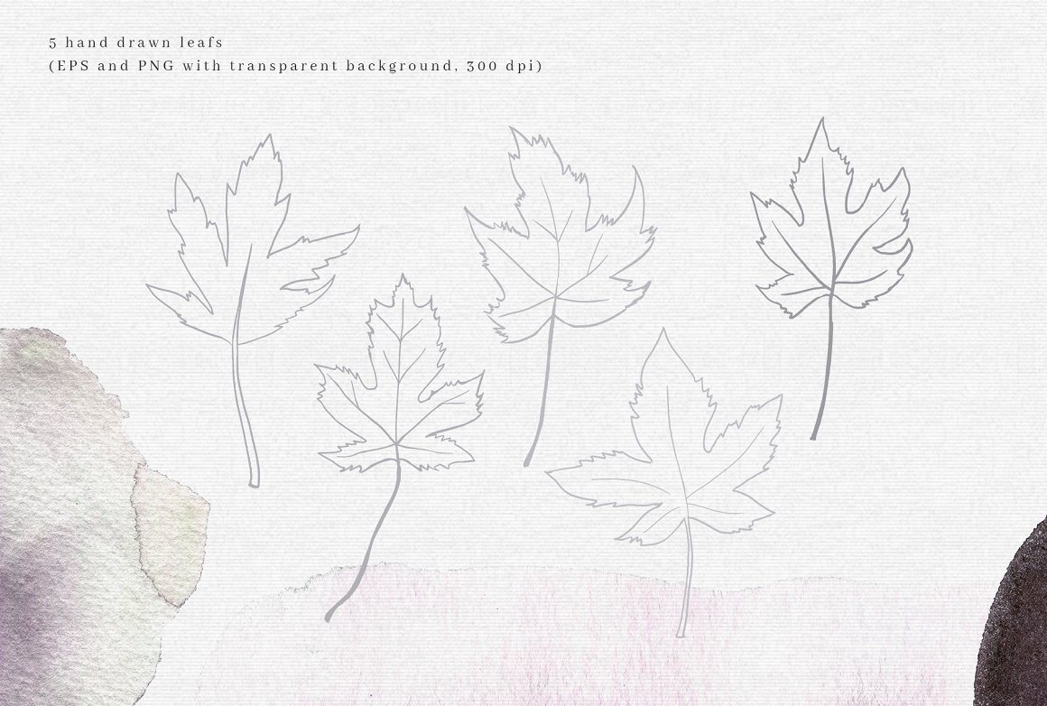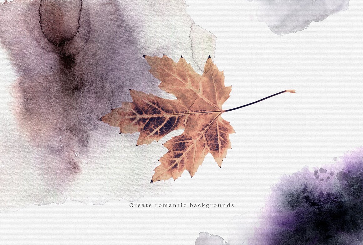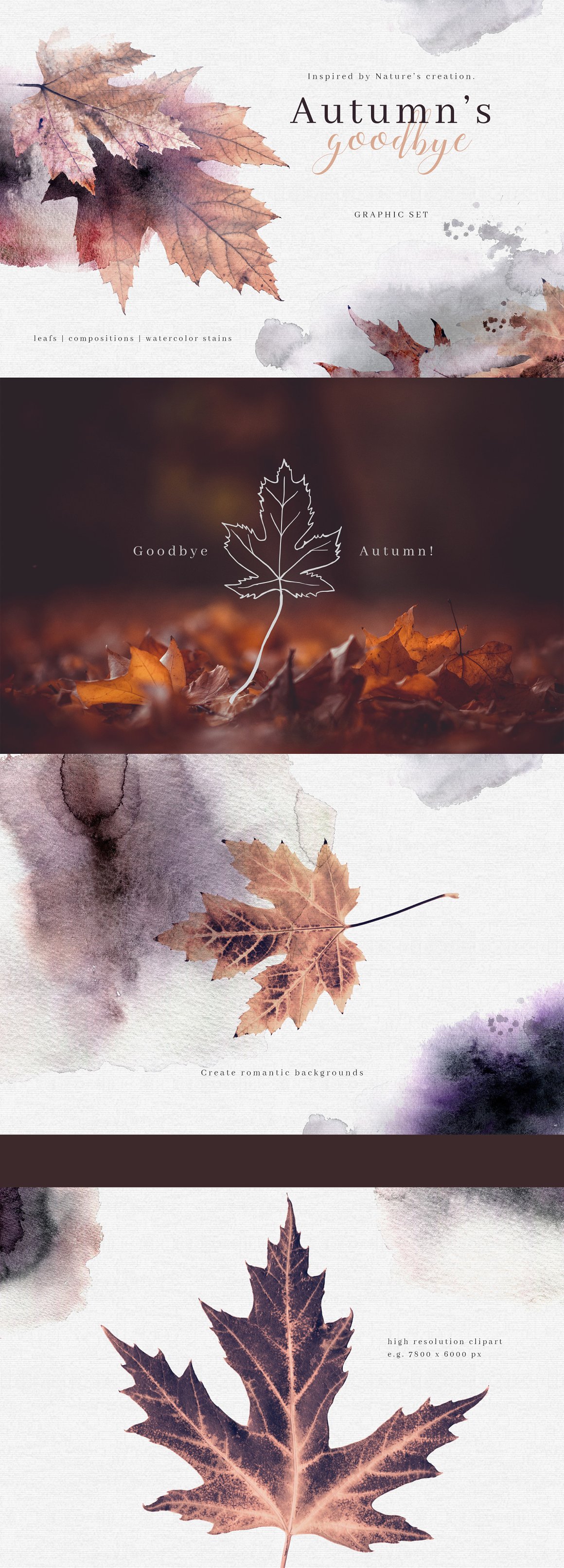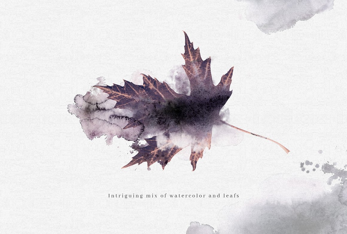 Introducing to you Autumn’s Goodbye. A moody and dark graphic set. Inspired by nature; a mix of leafs and watercolor. You will find here high quality clipart – leafs and compositions.