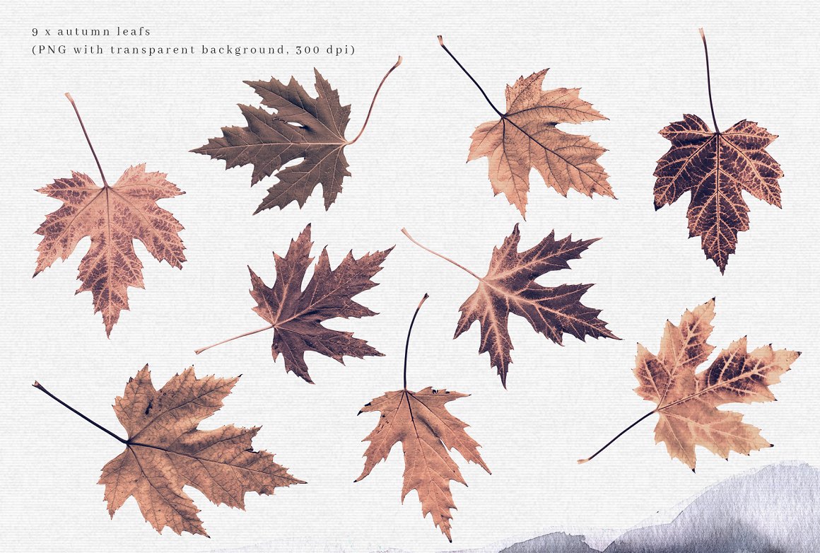 9 x .PNG LEAFS (300 dpi with transparent background):