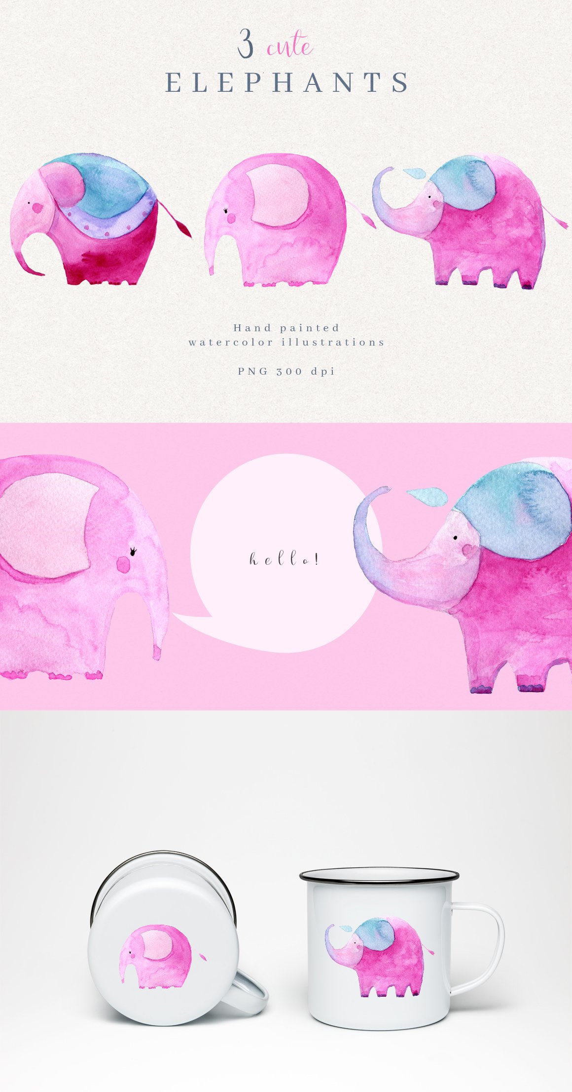 3 x elephants (.PNG files, 300 dpi, min. 6000 px wide)