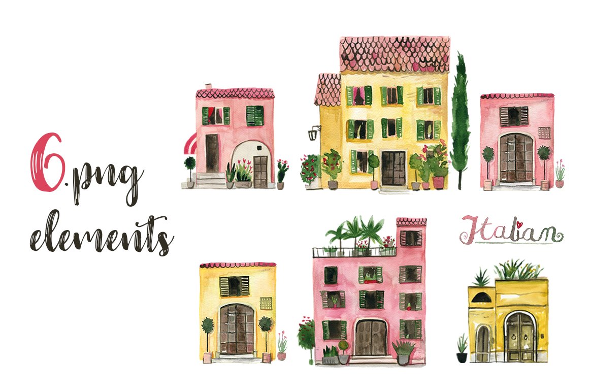 6 x .PNG high quality Italian houses