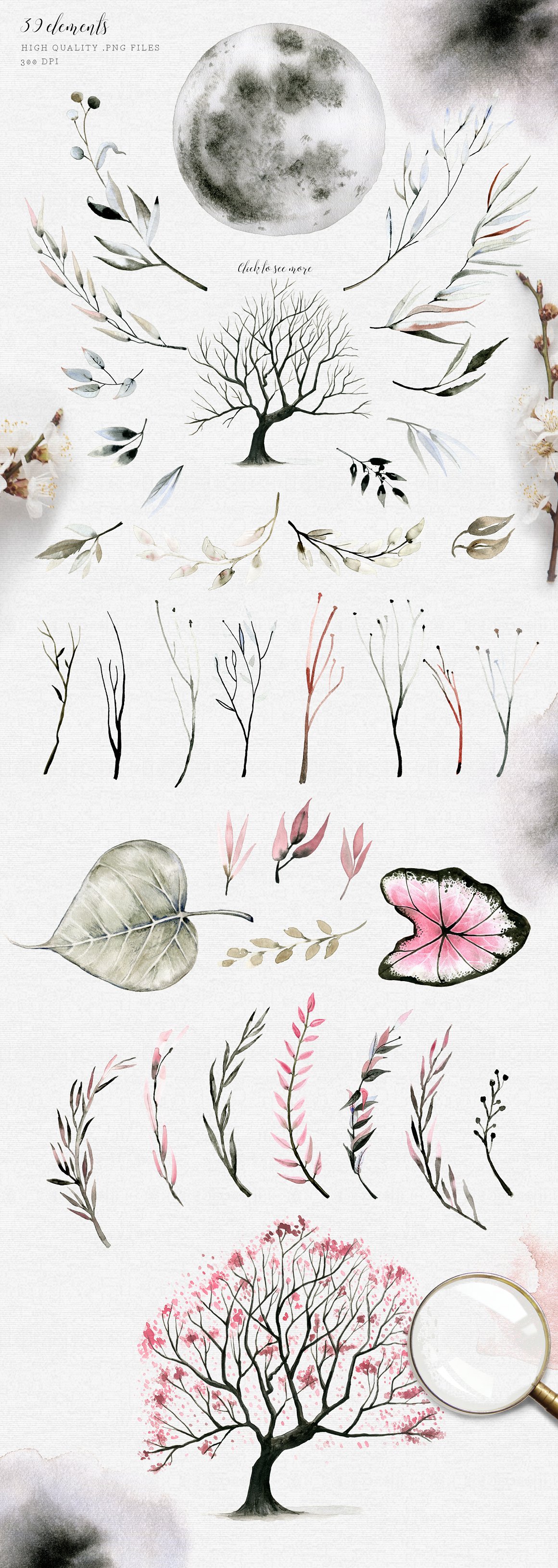 39 x .PNG watercolor ELEMENTS (300 dpi with transparent background):