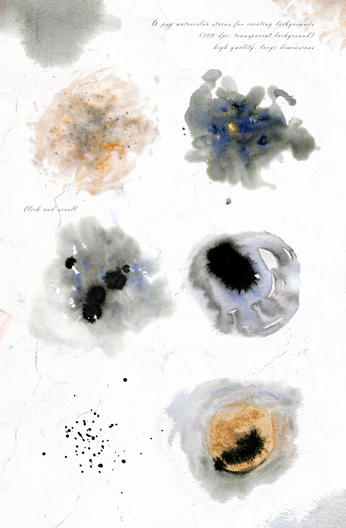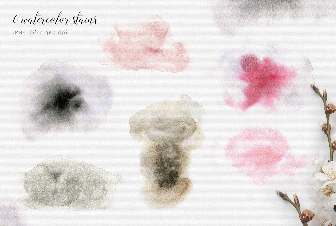 6 x .PNG watercolor STAINS designed for background (300 dpi with transparent background)