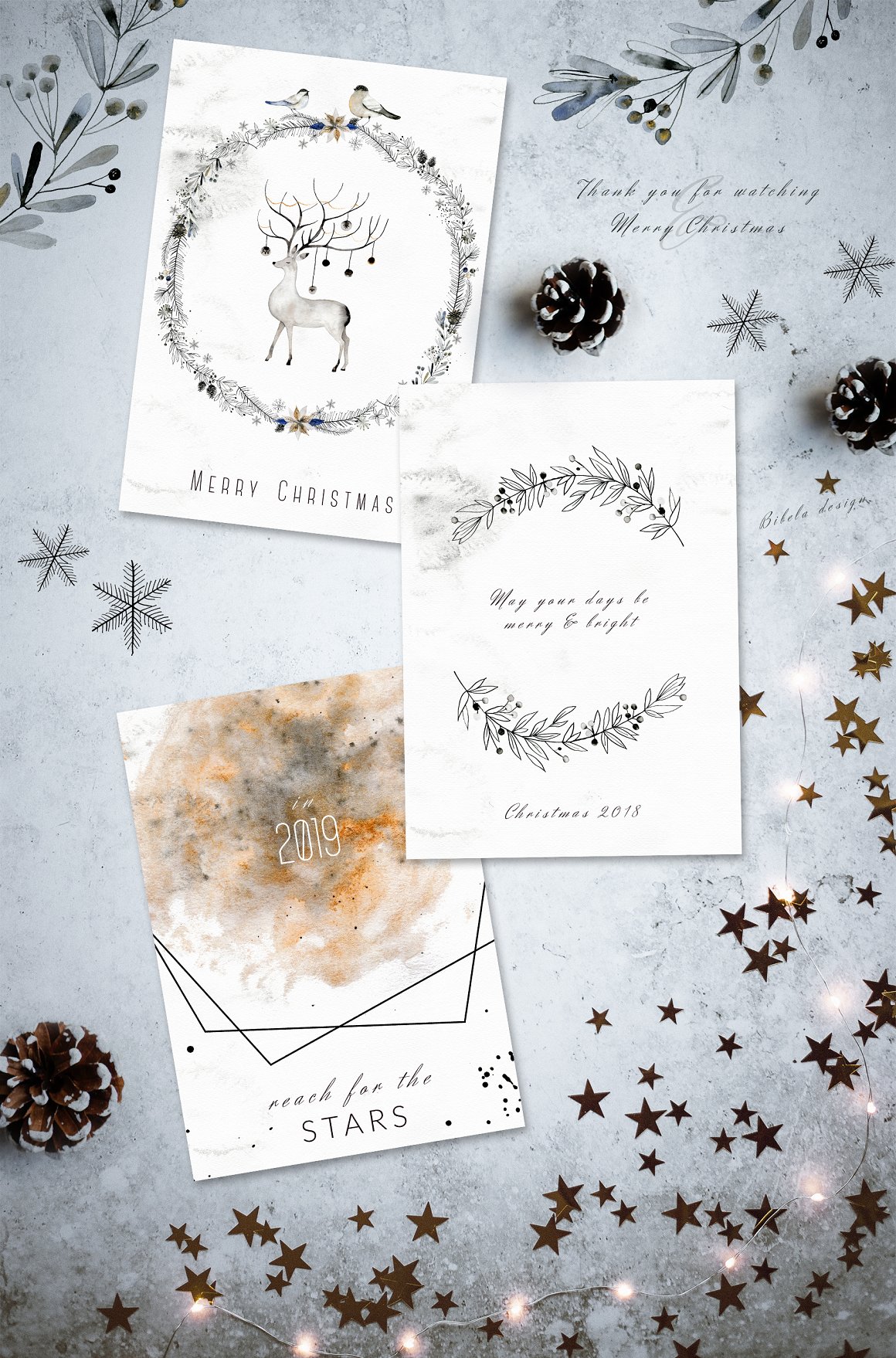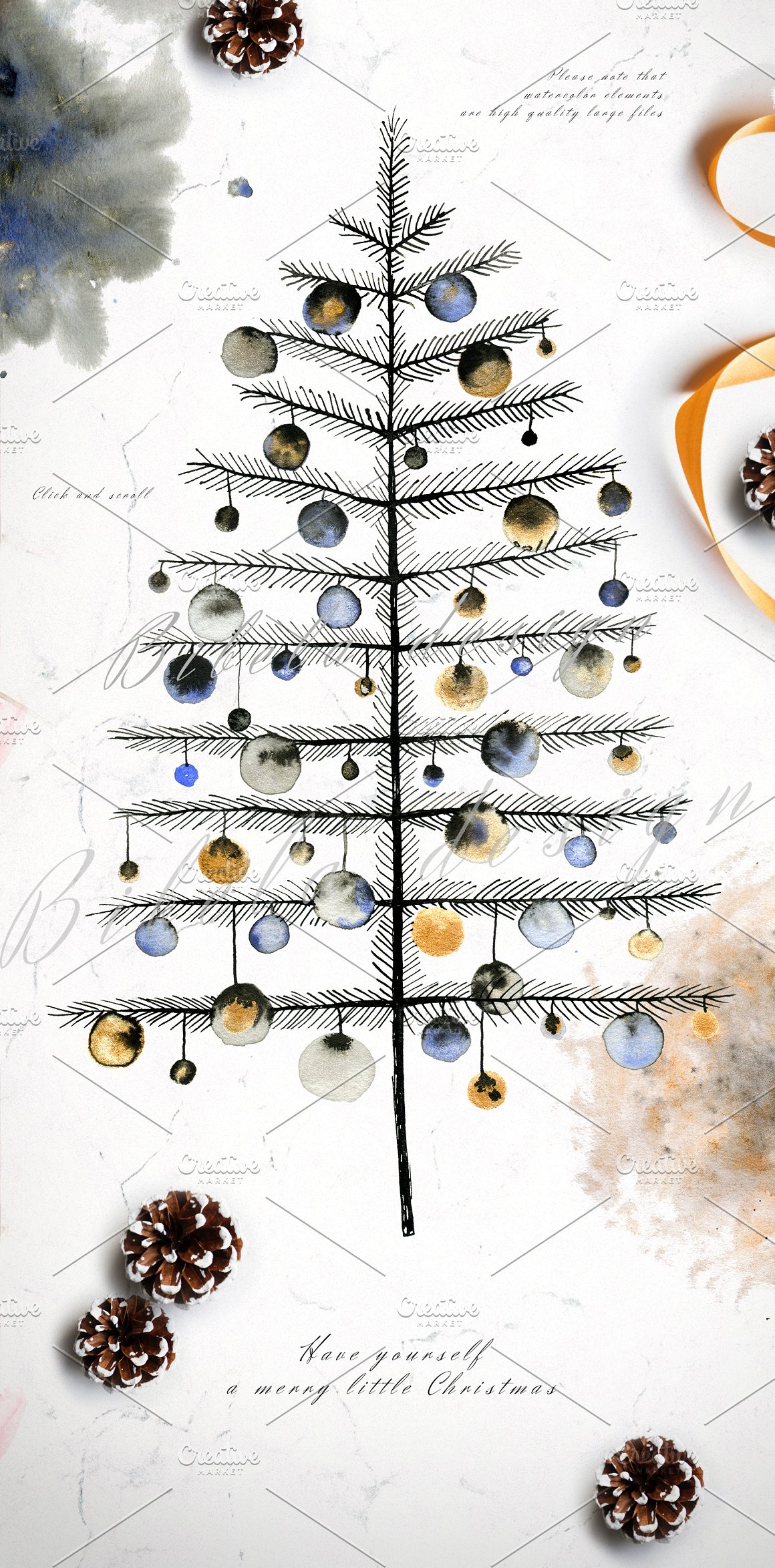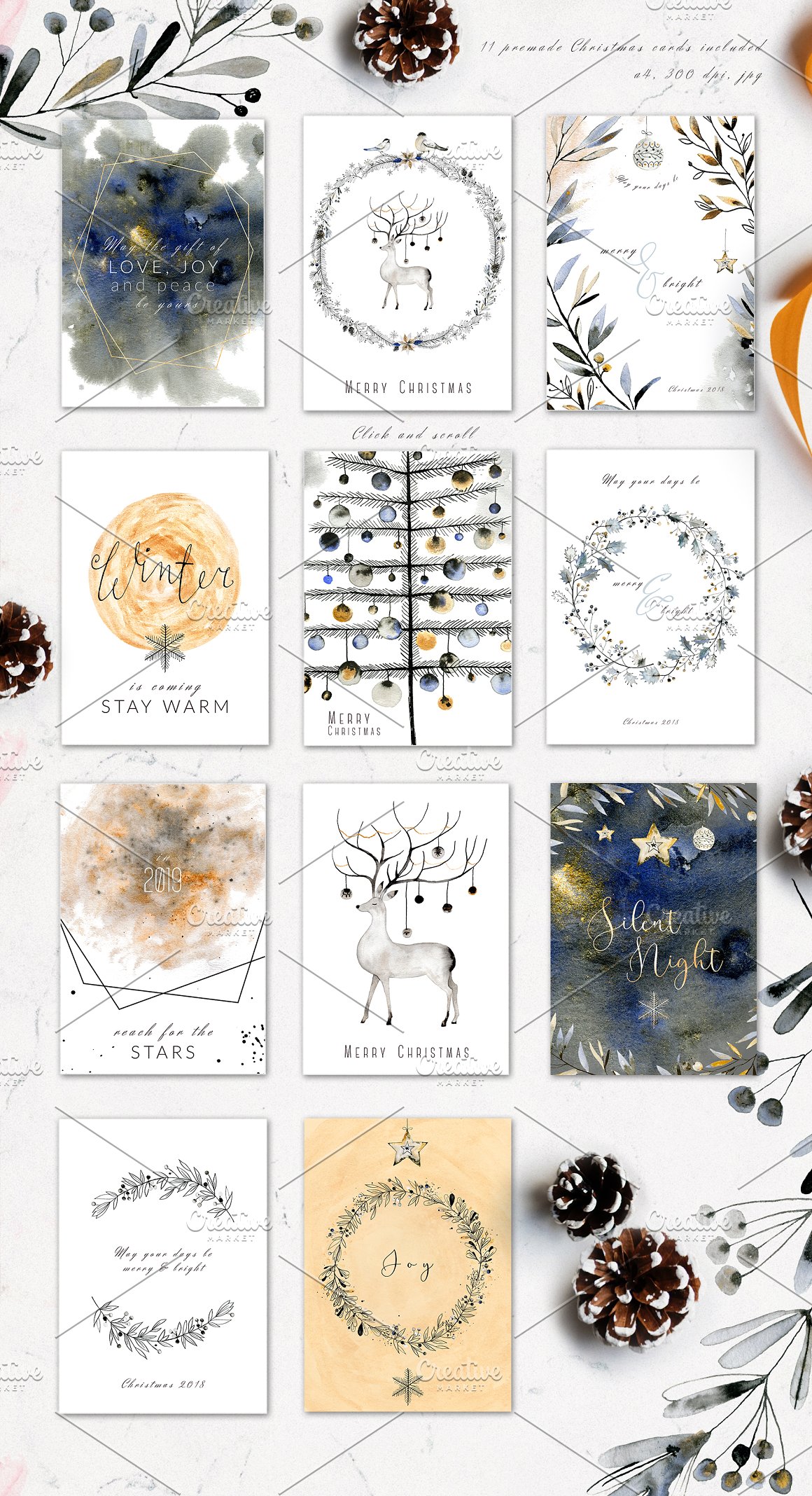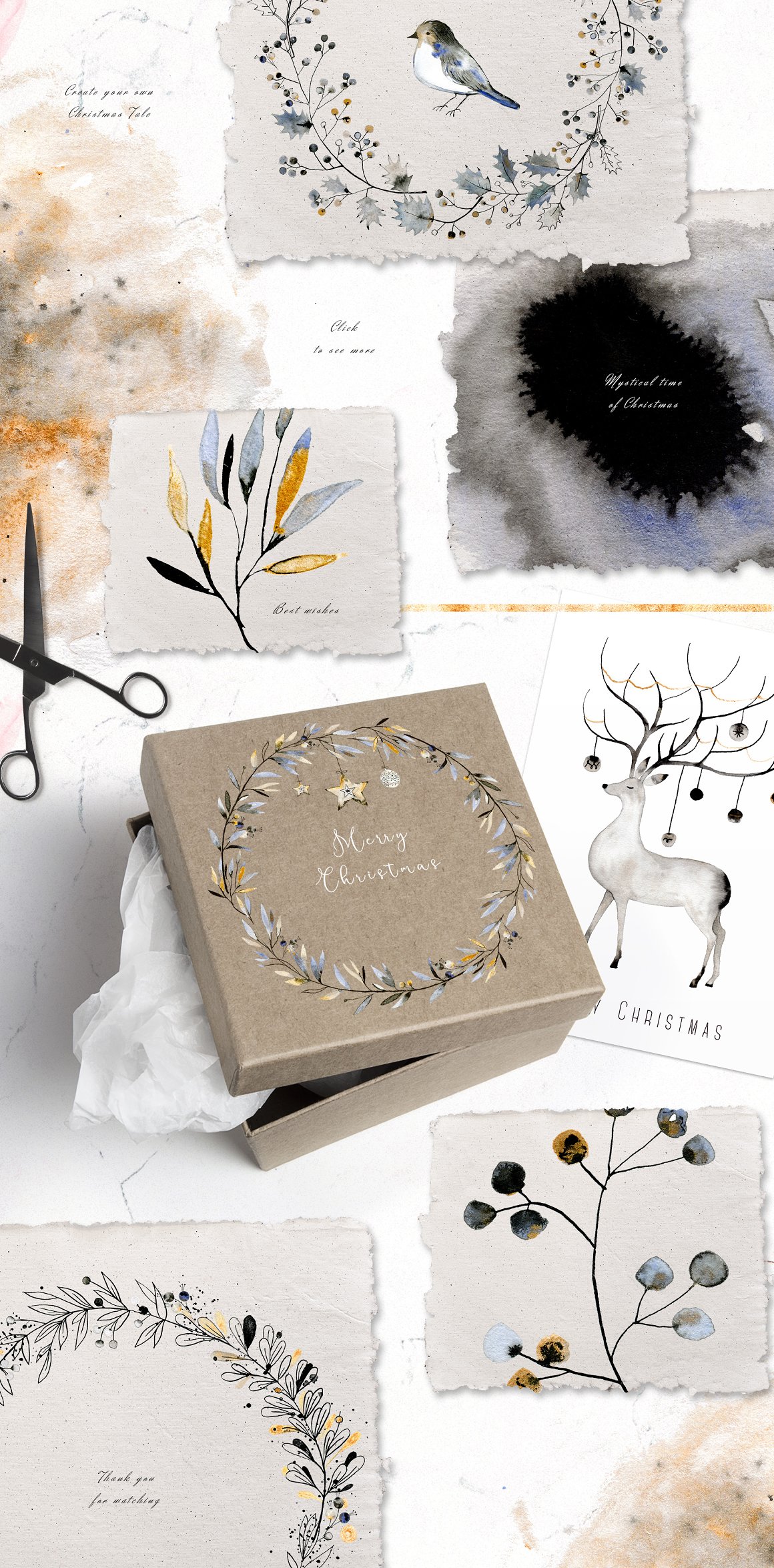 This set is perfect for Christmas designs but it will work perfectly for weddings, cards, packaging, blogs and as home decoration elements.