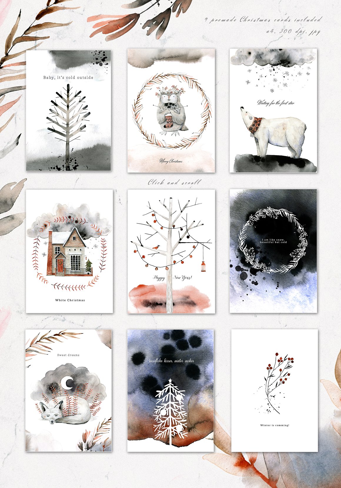 9 x .JPG premade, ready to use CHRISTMAS CARDS (300 dpi, A4)