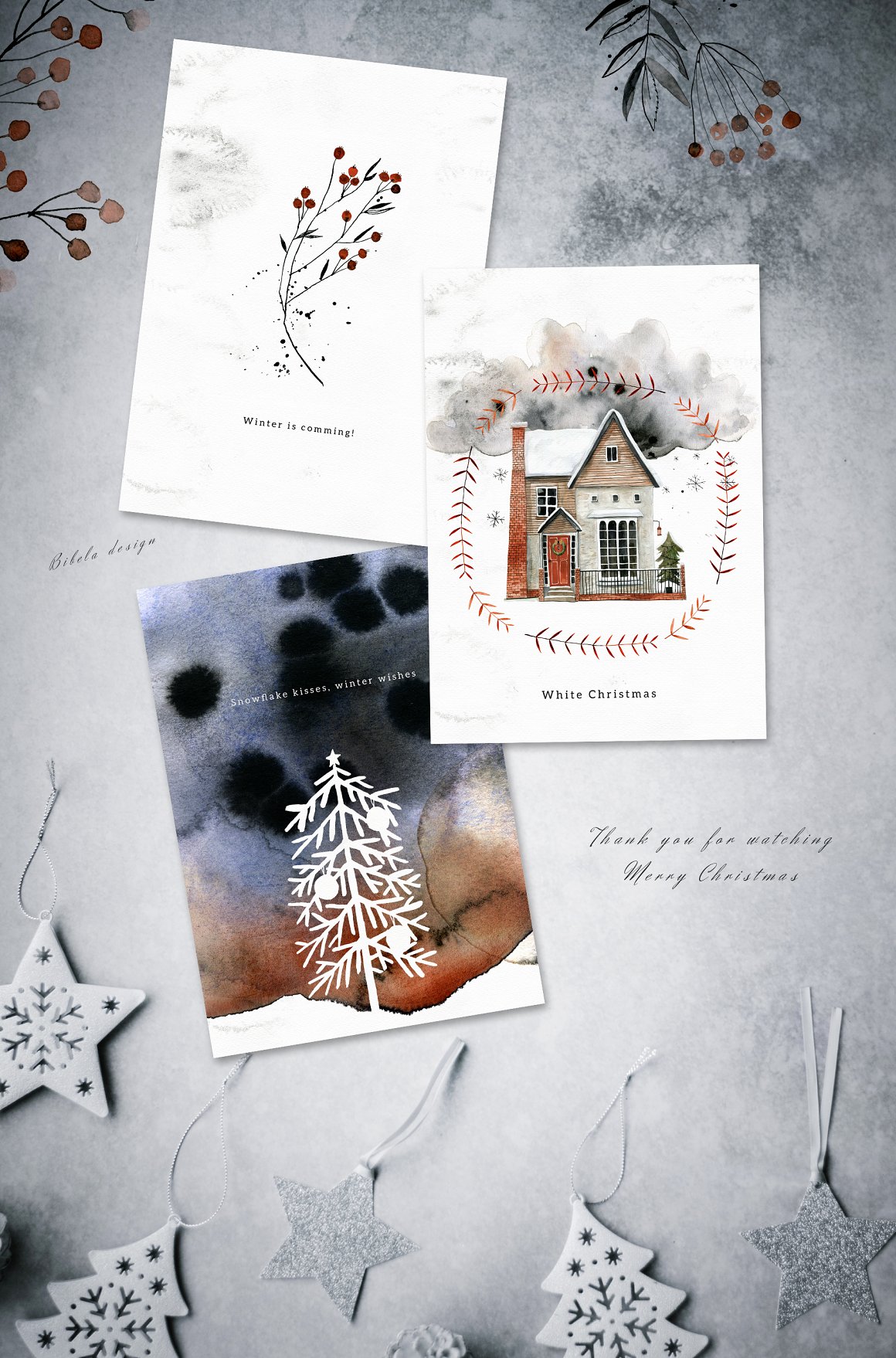 4. Noel Noir – Watercolor Christmas from Bibela