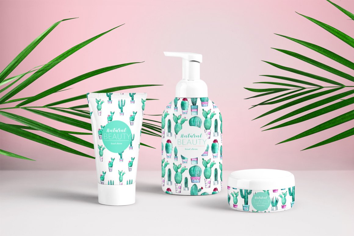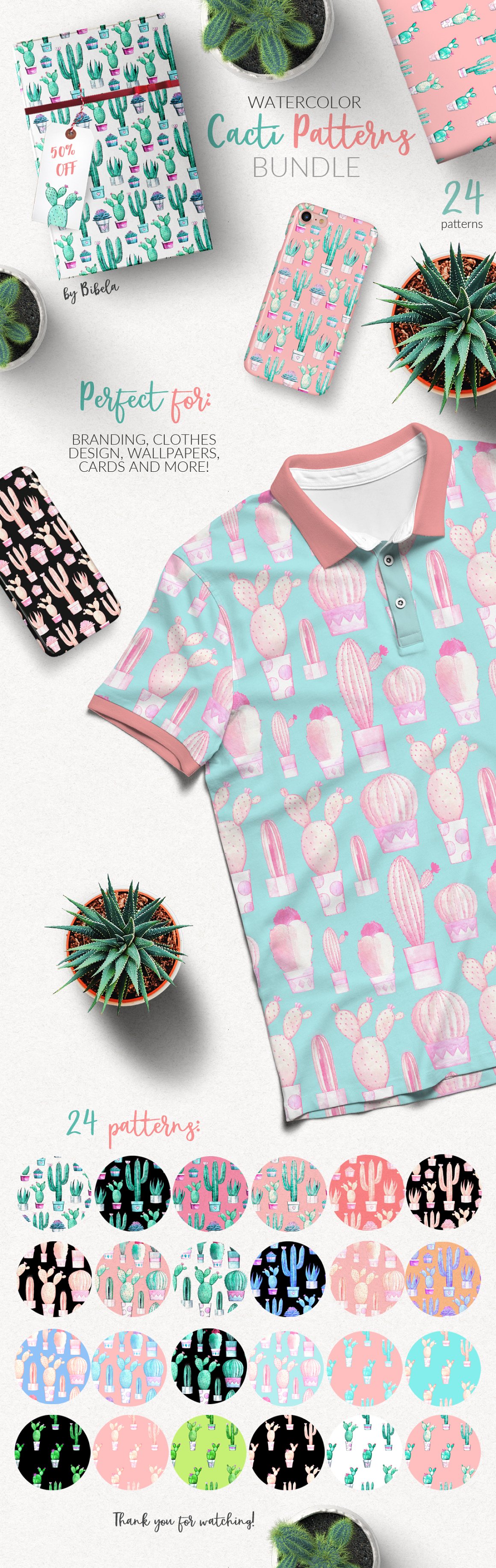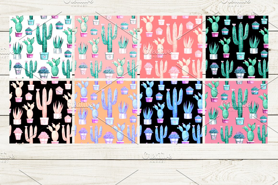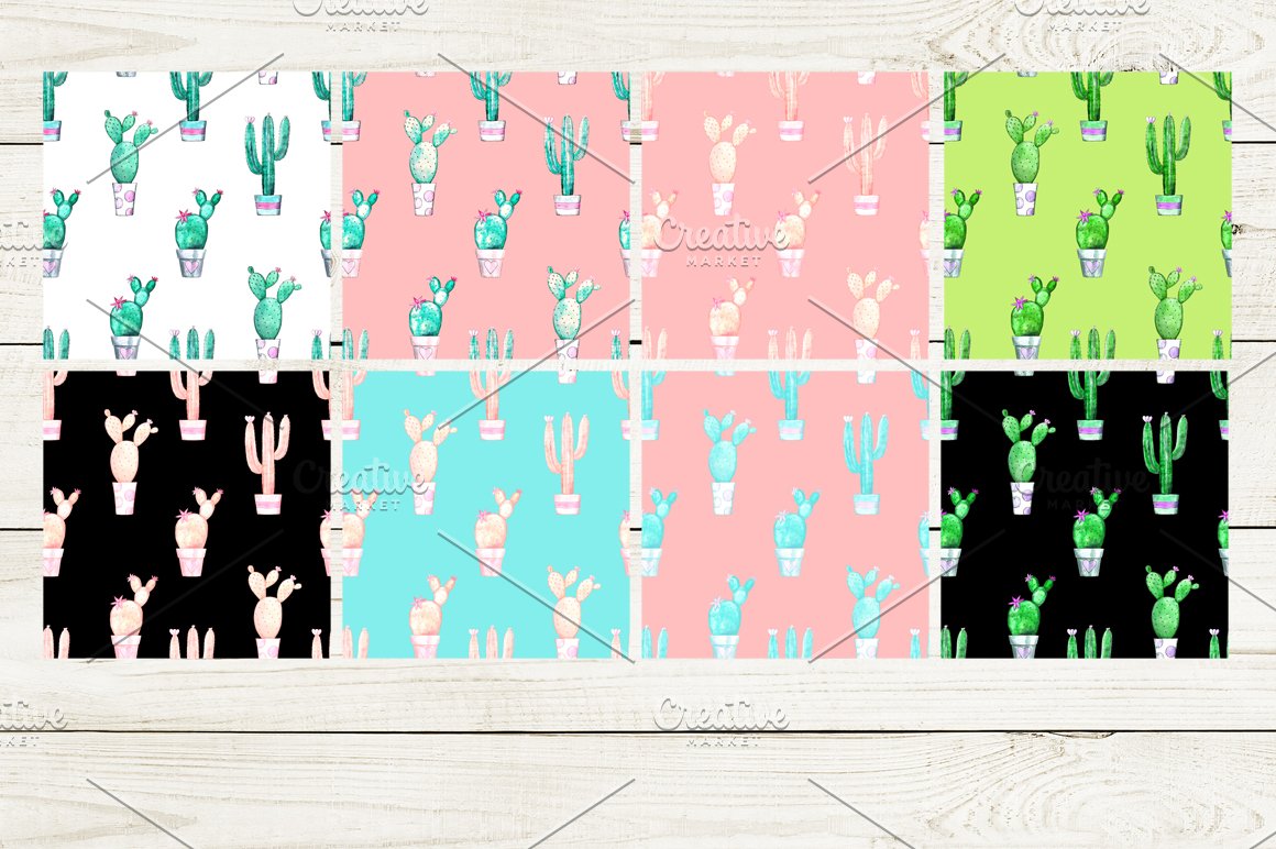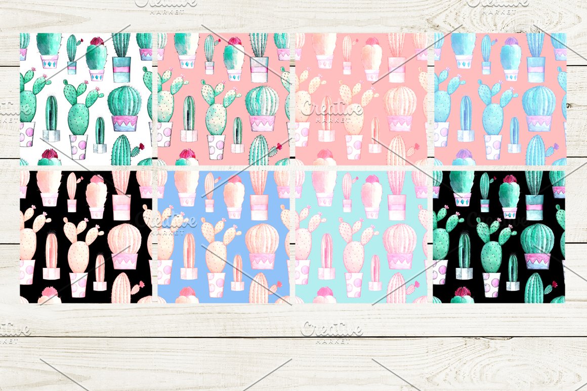 13. Watercolor Cacti Patterns BUNDLE from Bibela