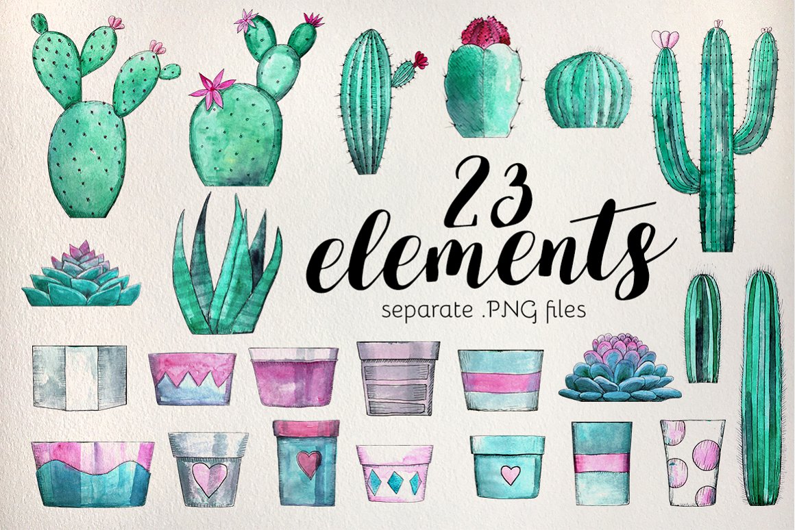 12. Watercolor Cactus and Succulent Set from Bibela