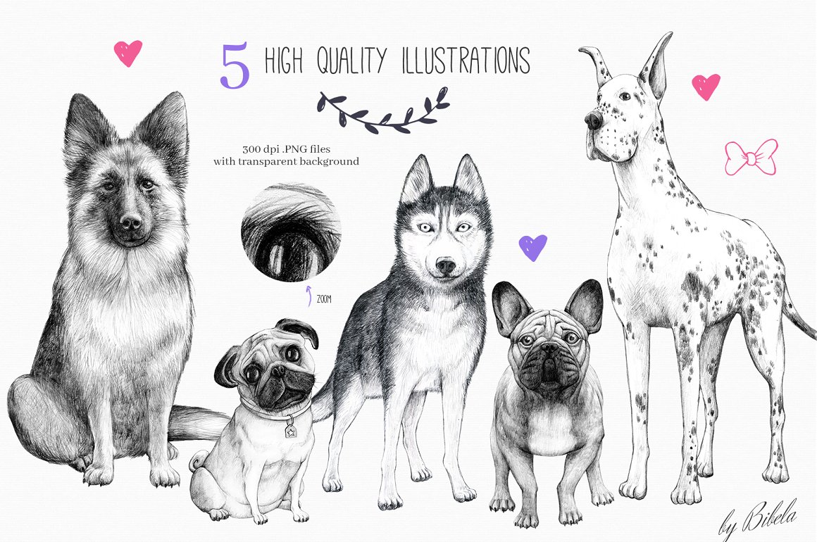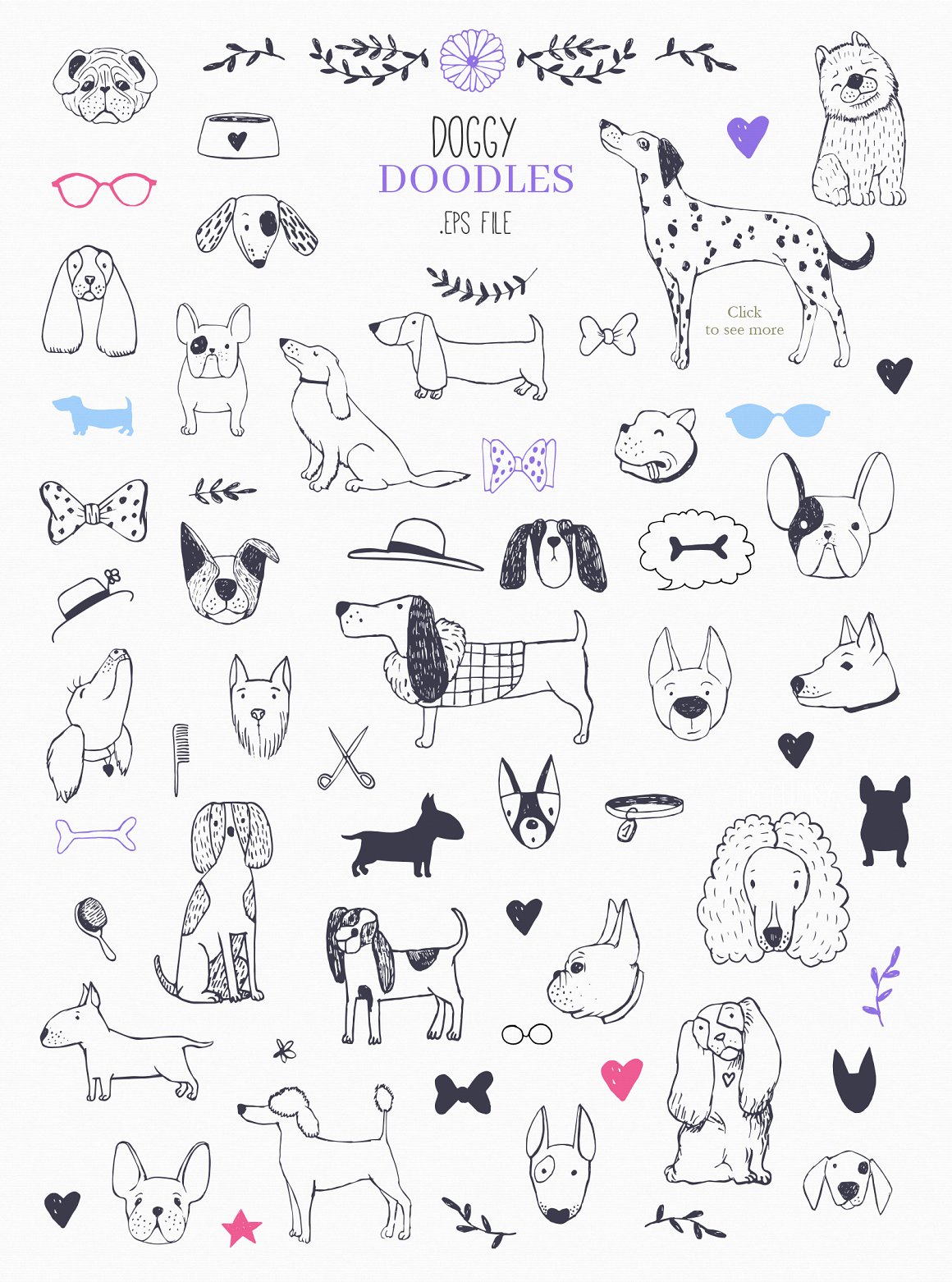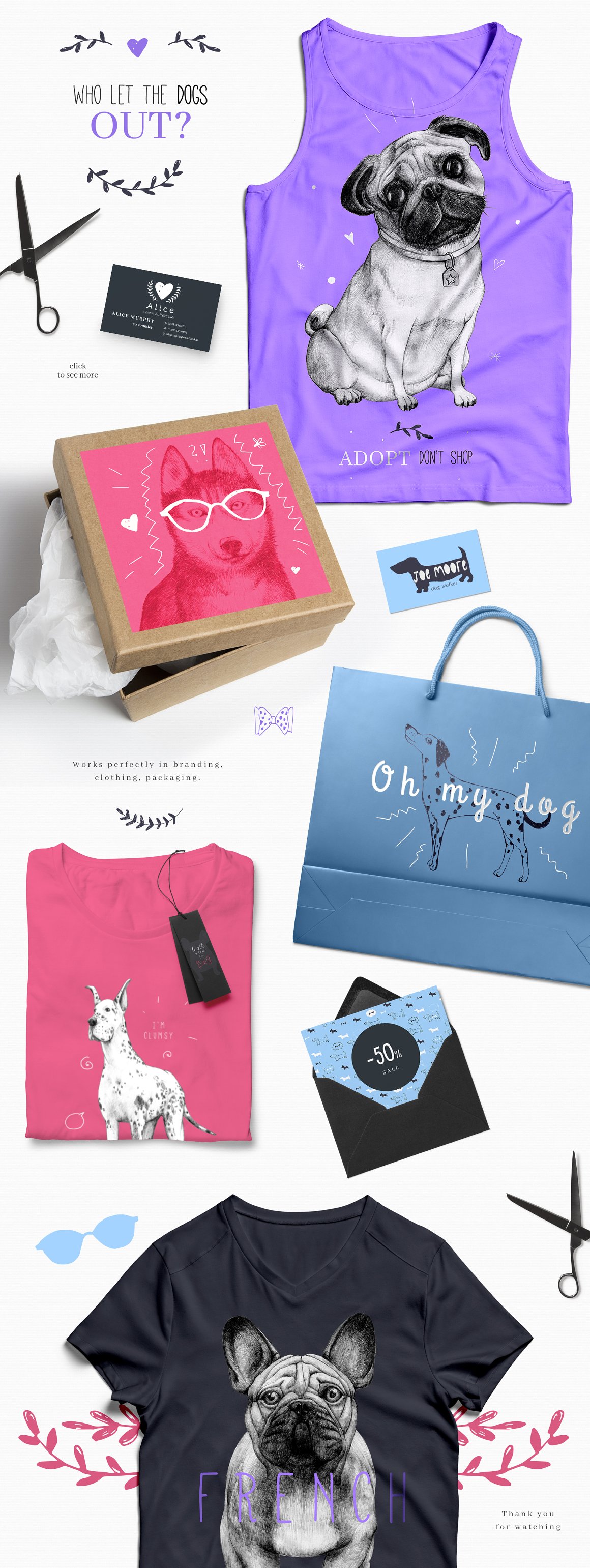 For all you dog lovers out there! Introducing the new Who Let The Dogs Out set. It is a unique combination of classical pencil drawings and fun doodles. Perfect for branding, packaging and fashion. You can use/edit the pre made logos and mix them with illustrations and patterns.