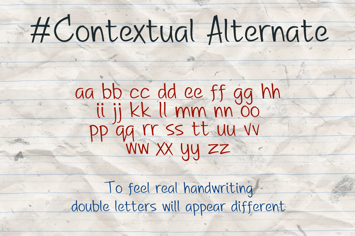 A Great Happiness is a Handwriting Font that comes with 261 Glyphs. To feel handwriting, double letters of this font will appear different!