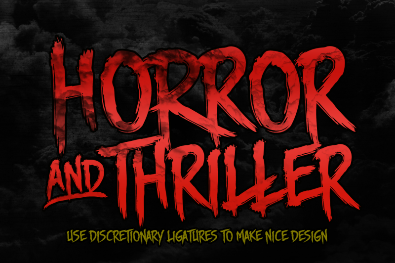 Story Brush is the high detailed brush font that has over 240 glyphs. Coming with 2 Verison Regular and slanted. This font is equipped with OpenType feature for make custom feel for your design. This font is designed for t-shirts design, logos, horror design, grunge & etc.