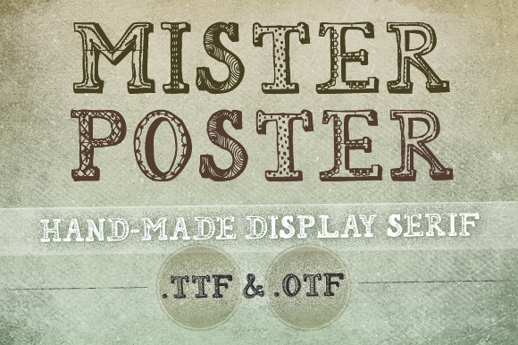 Say ‘Hello’ to Mr Poster – hand-made display serif. 68 glyphs in total (for the full list of glyphs see attached images). Available in .ttf and.otf format.