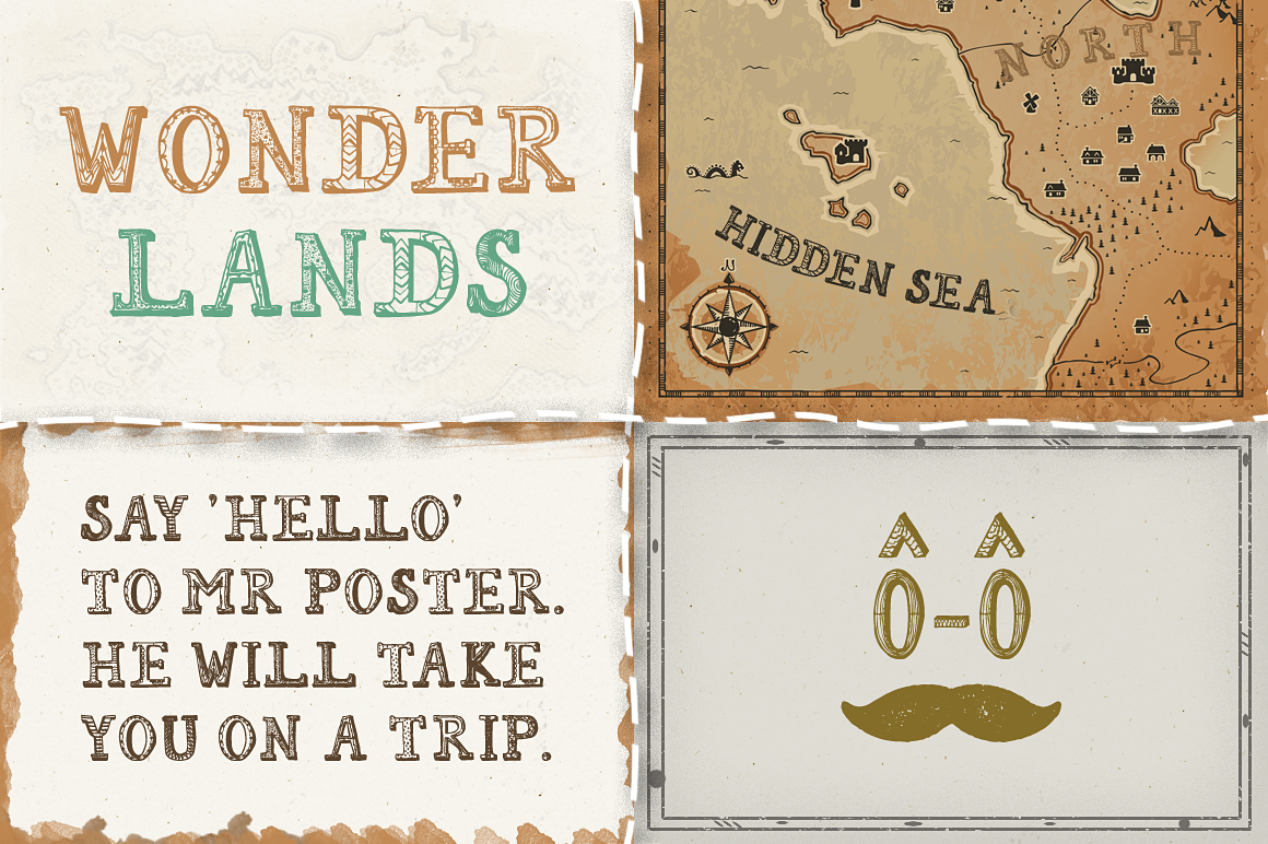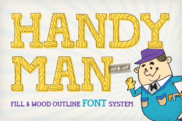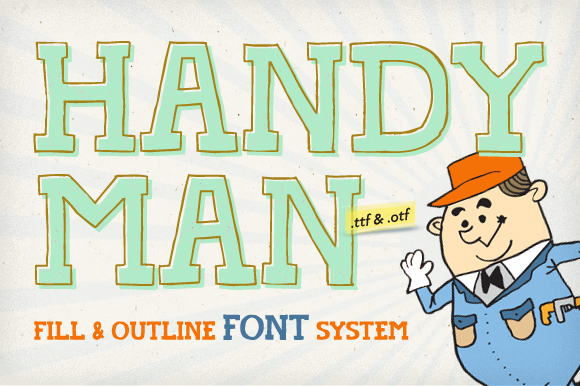 Ladies and Gentleman! Handyman offers full service now! And when you get full service, there is a big discount (simply try to purchase each font separately and you’ll pay $55). Say ‘hello’ to Handyman and let him make the good job for you! It’s handcrafted serif display – a good fit for invites, comics, illustrated stories, headlines and more. It includes font system which you can use to make a ‘shift’ effect. The pack includes three fonts in two formats each (.ttf & .otf)