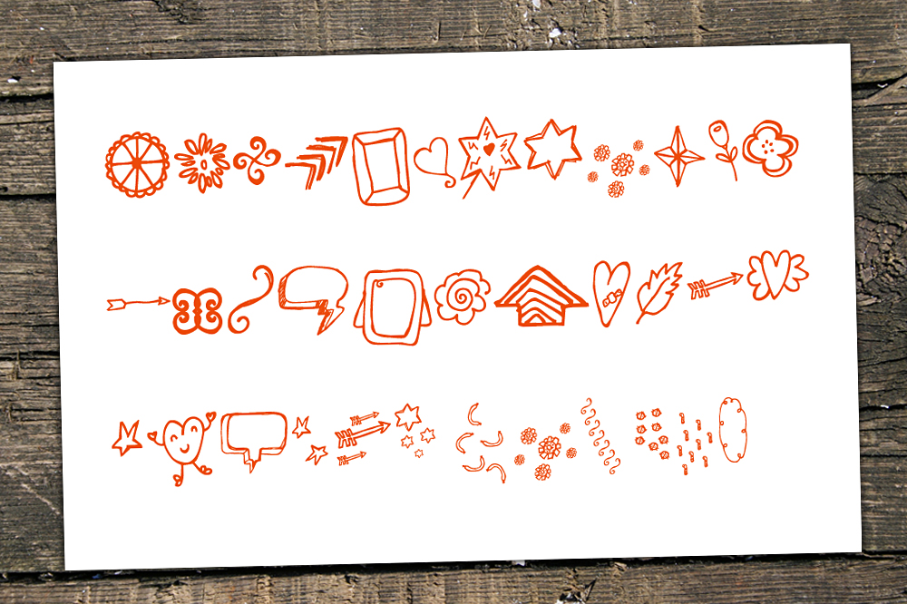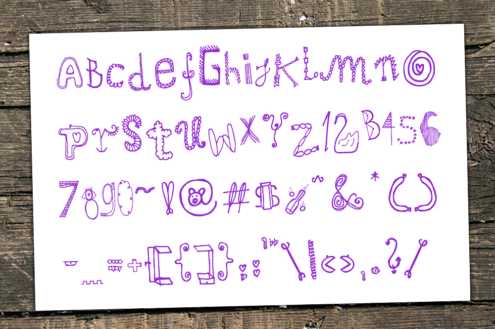 Let us introduce Mrs Doodle and Mrs Doodle Kids! This is a great proposal for any hand-crafted printed and digital goods related with kids, love, happiness… Mrs Doodle represents all numerals (0-9) and latin letters (A-Z) with a funny style. Mrs Doodle & Kids represent a lot of doodle goods as flowers, hearts, ornaments, flourishes, arrows, balloons, stars and others. Fonts are available in .ttf as well as .otf format.