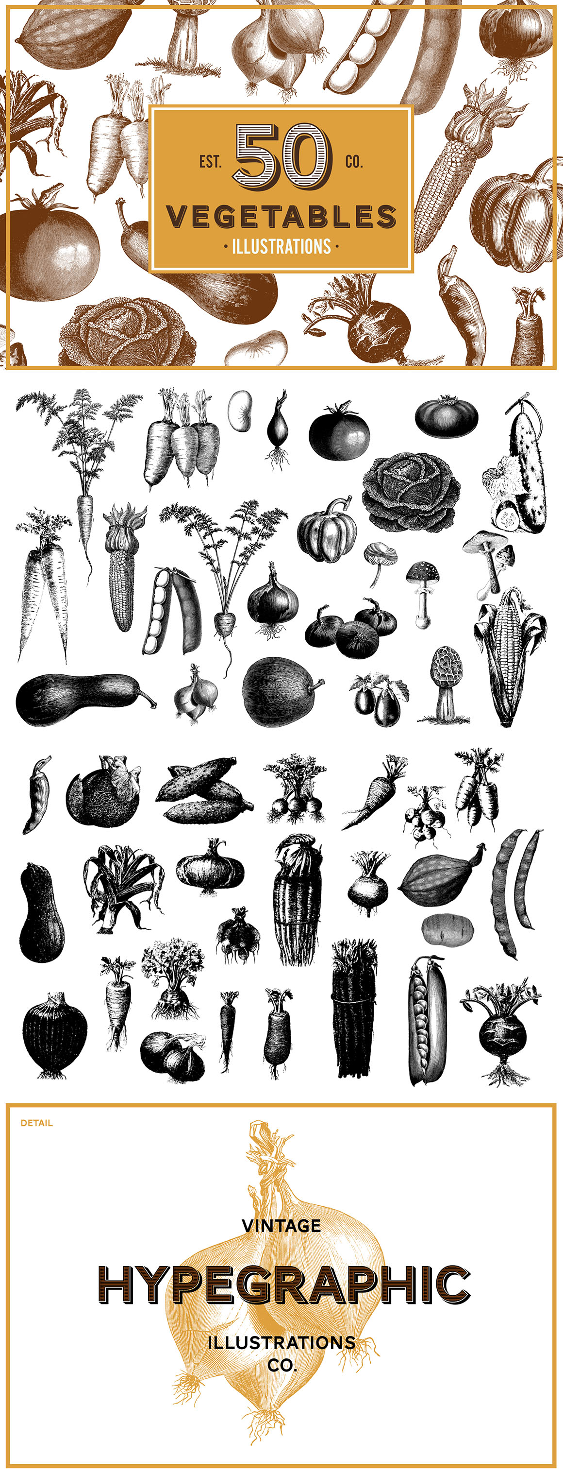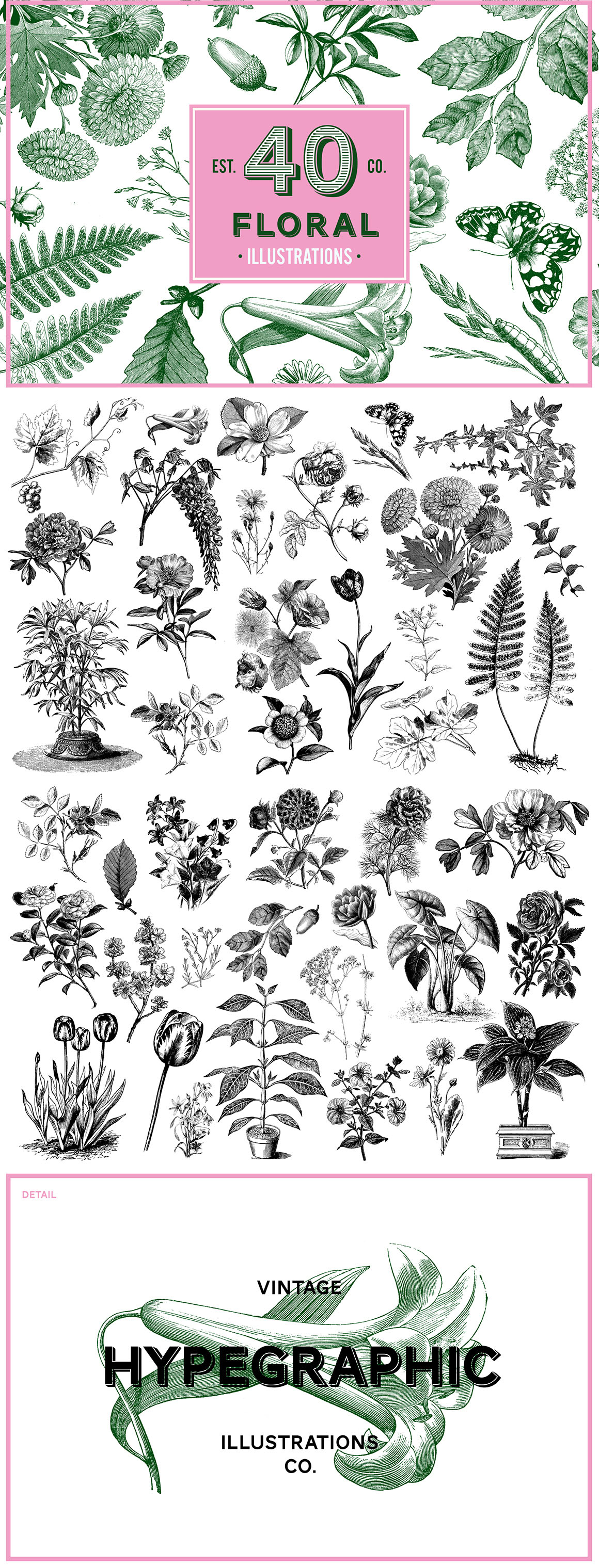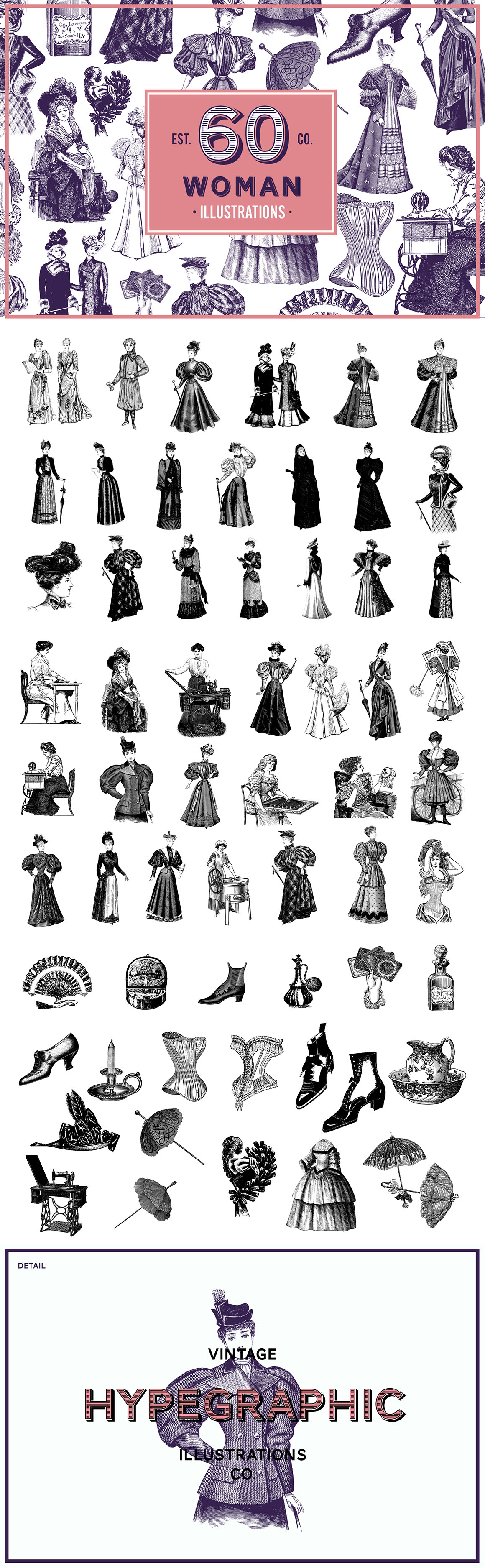 All these beautiful vintage illustrations are from hypegraphic. You can mix, cut, color change – just play with all these vector images and create amazing and unique designs! 😉